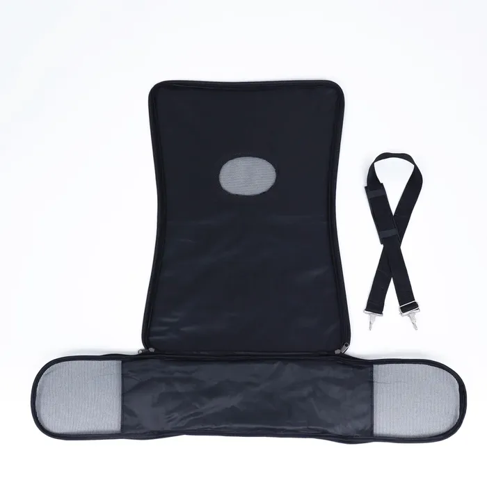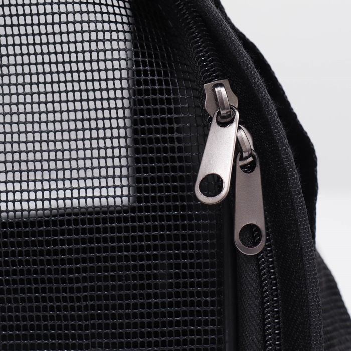 В дно переноски вшит плотный картон, который обеспечивает твердую основу и защищает животное от вибраций и ударов. Прозрачная сетка позволяет питомцу наблюдать за окружающим миром и получать достаточно свежего воздуха.