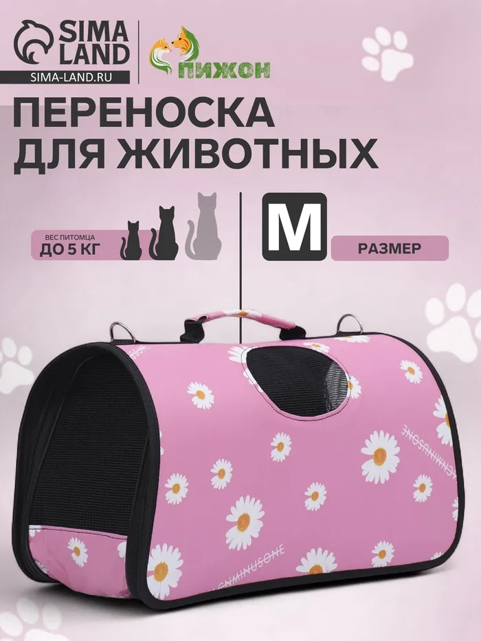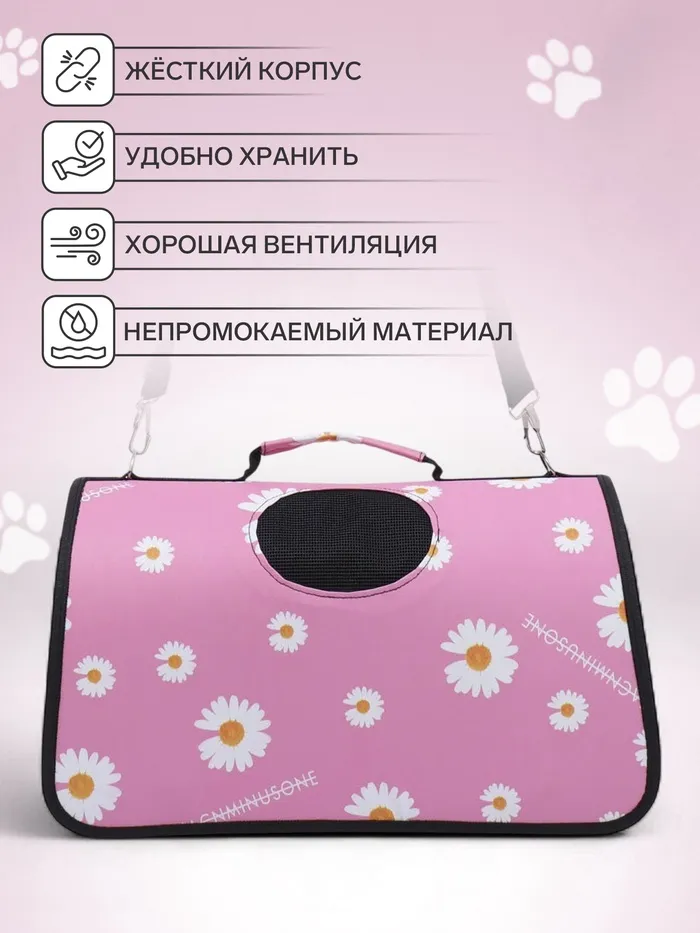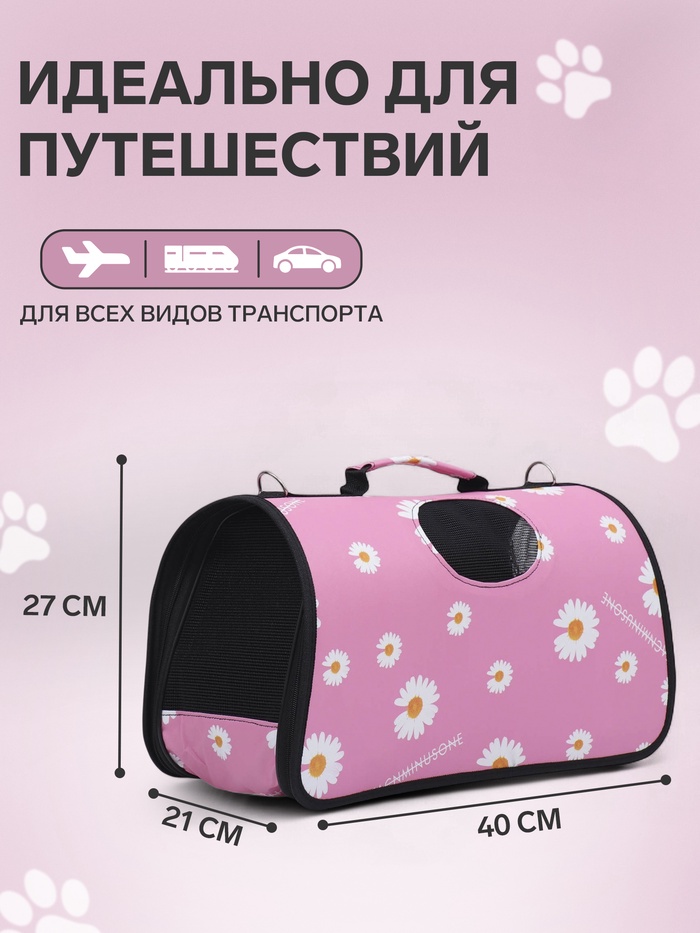 Сумка - переноска для животных "Цветы", розовая, размер М, 40 х 21 х 27 см — Характеристики