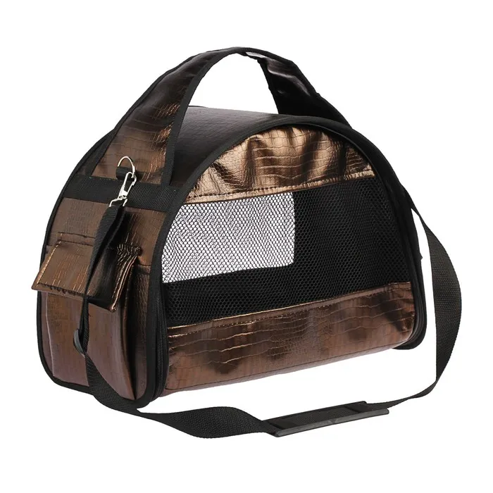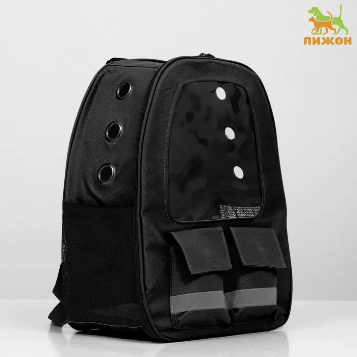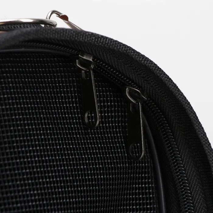 В дно переноски вшит плотный картон, который обеспечивает твердую основу и защищает животное от вибраций и ударов. Прозрачная сетка позволяет питомцу наблюдать за окружающим миром и получать достаточно свежего воздуха.