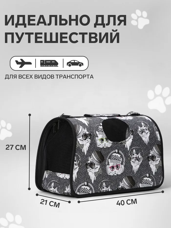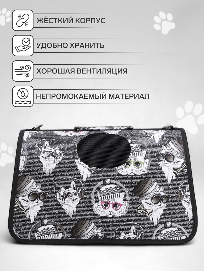 Сумка-переноска «Зимние коты» сочетает в себе практичность и эстетику. Её размер M подходит для большинства небольших животных, а прочные материалы гарантируют долговечность. Сумка легко чистится и компактно складывается, что делает её удобной для хранения и транспортировки.