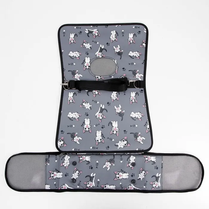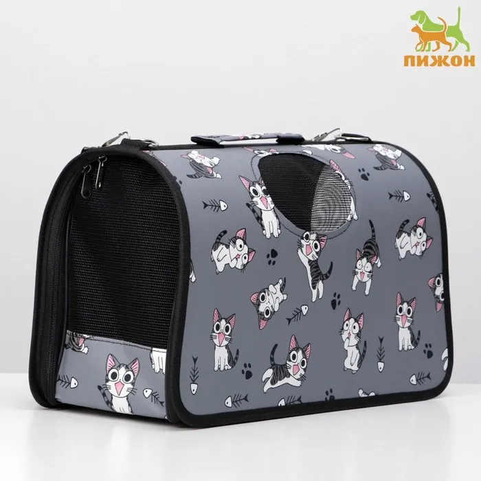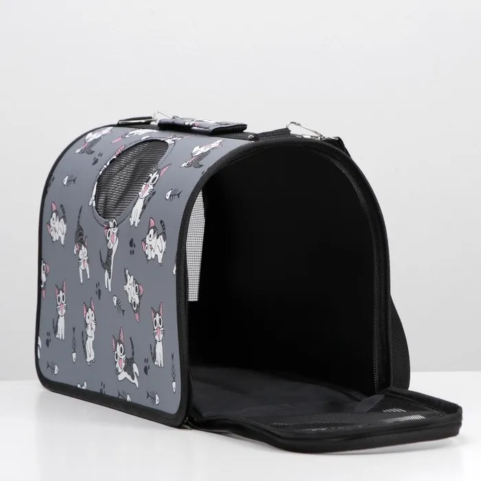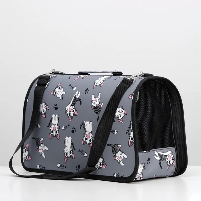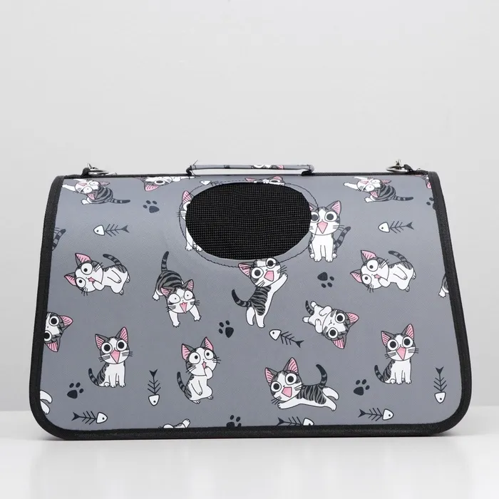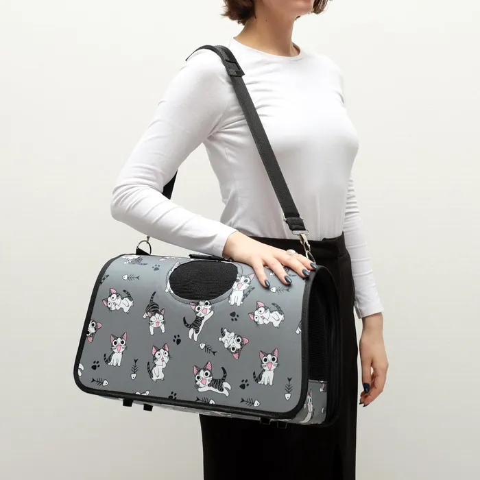 Сумка-переноска каркасная "Играющие котики", размер L, 53 х 21 х 29 см, серая
