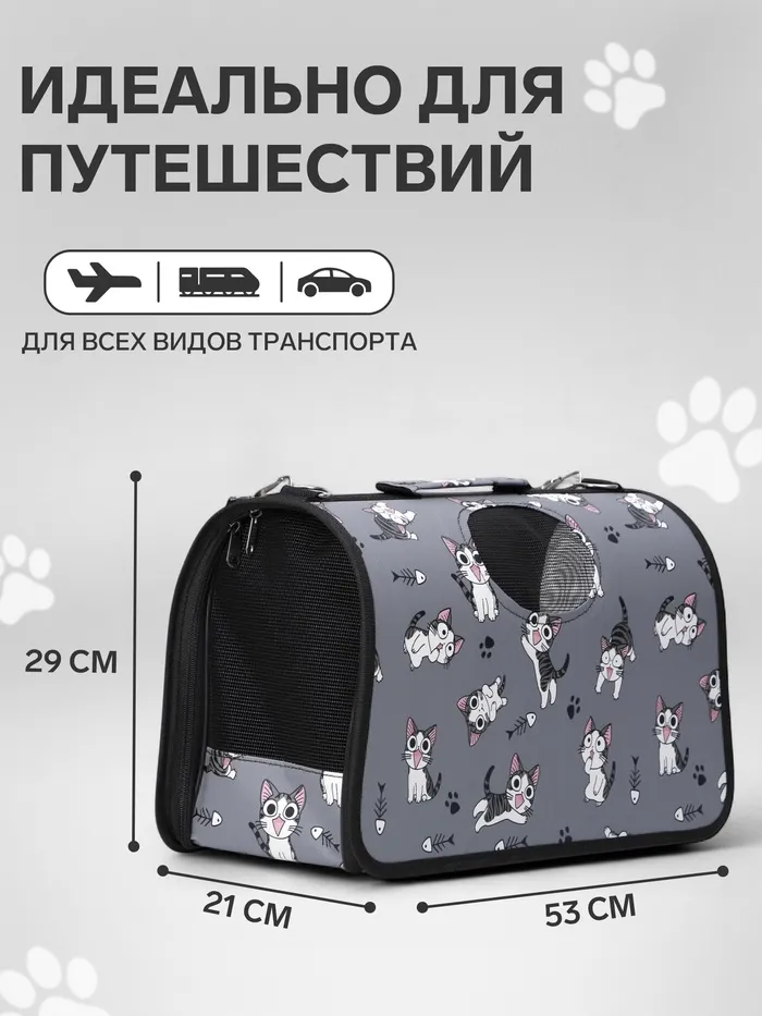 Сумка-переноска каркасная "Играющие котики", размер L, 53 х 21 х 29 см, серая — Характеристики