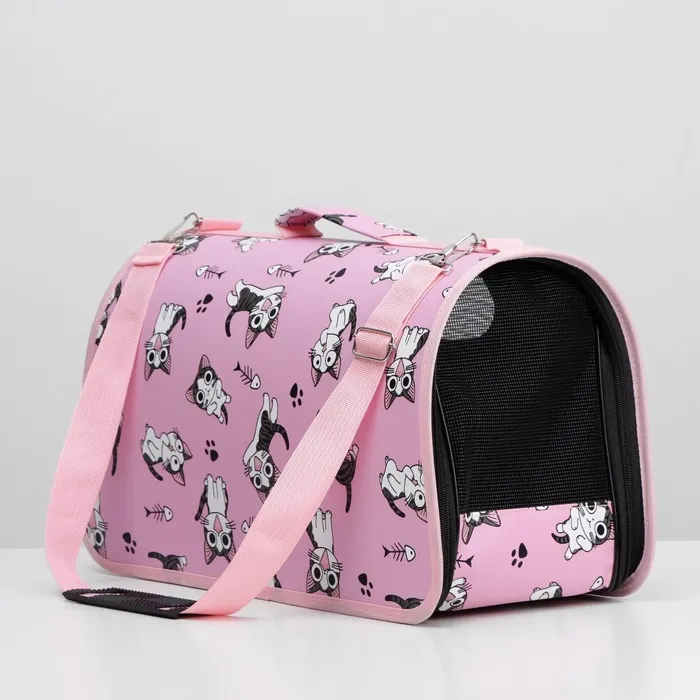 Сумка-переноска каркасная "Играющие котики", размер М, 40 х 21 х 27 см, розовая — Характеристики