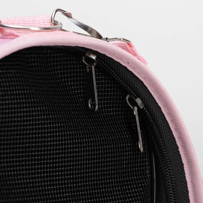 В дно переноски вшит плотный картон, который обеспечивает твердую основу и защищает животное от вибраций и ударов. Прозрачная сетка позволяет питомцу наблюдать за окружающим миром и получать достаточно свежего воздуха.
