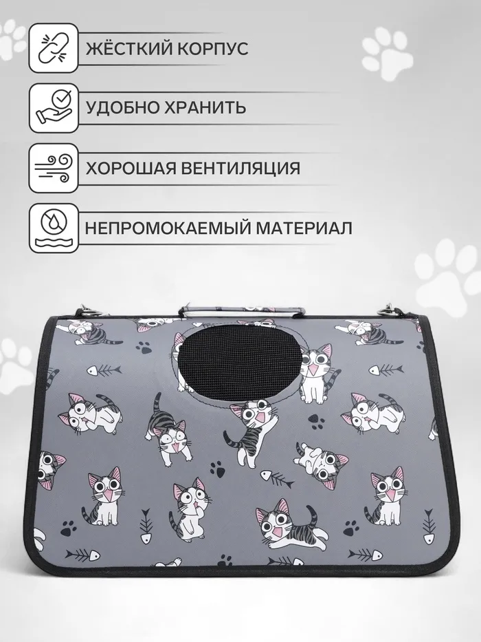 Сумка-переноска каркасная "Играющие котики", размер M, 40 х 21 х 27 см, серая — Характеристики