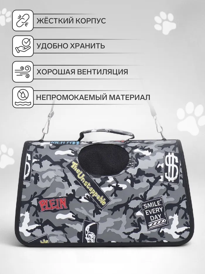 Сумка-переноска каркасная "Камуфляж", размер M, 40 х 21 х 27 см, — Характеристики
