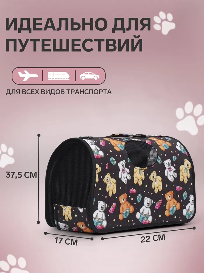 - Черный цвет с рисунком делает переноску стильной и нейтральной для любого интерьера.