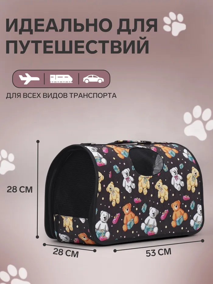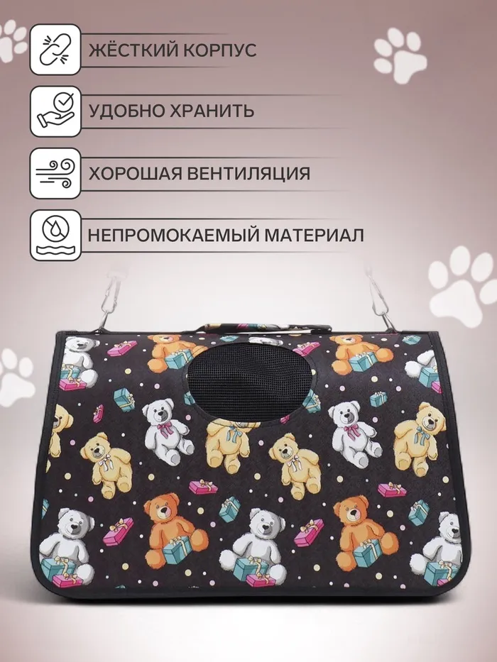 Сумка-переноска каркасная "Медведи на черном фоне", размер L, 52 х 28 х 28 см — Характеристики