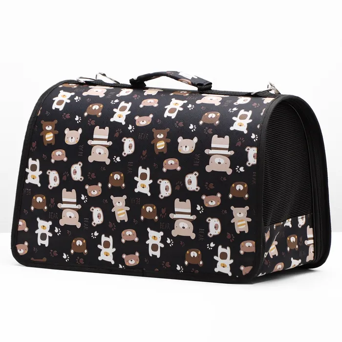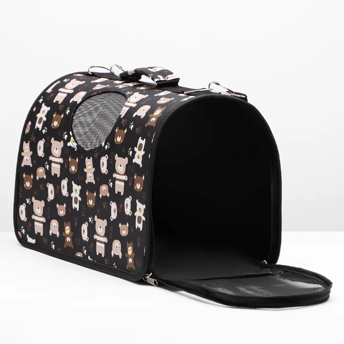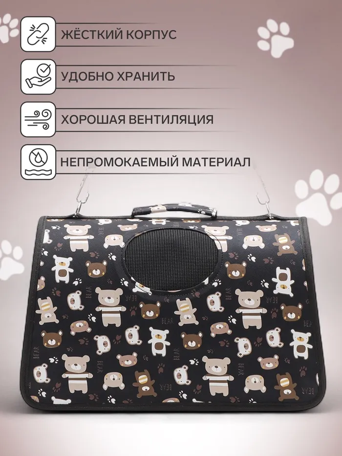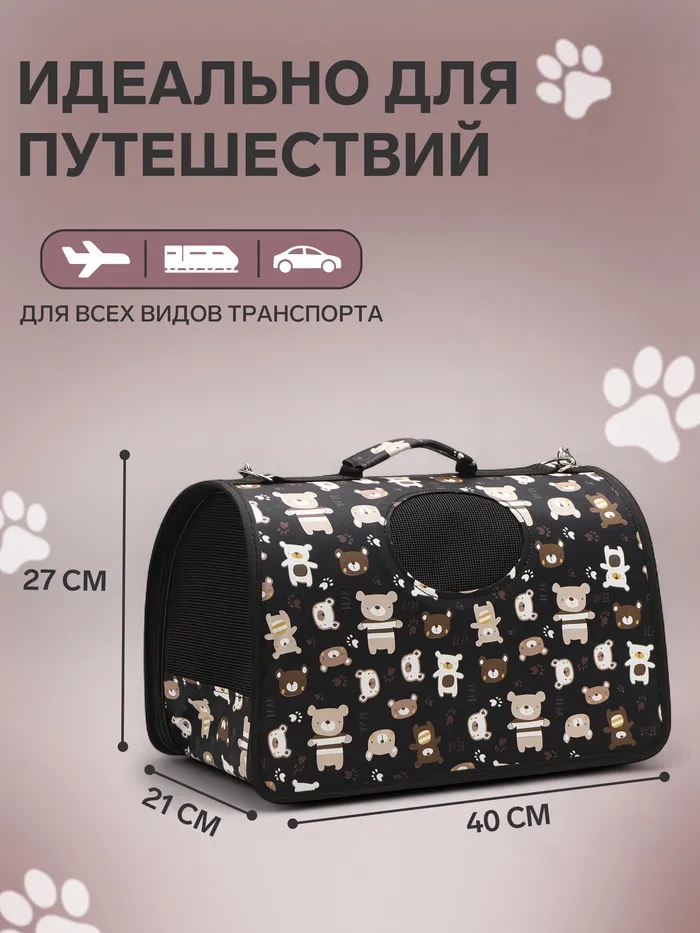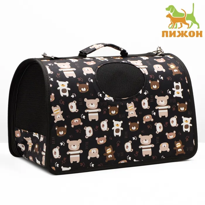Сумка-переноска каркасная "Медвежонки", размер M, 40 х 21 х 27 см, чёрный — Характеристики