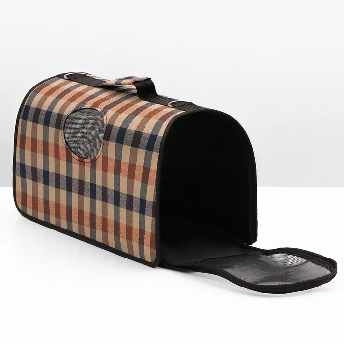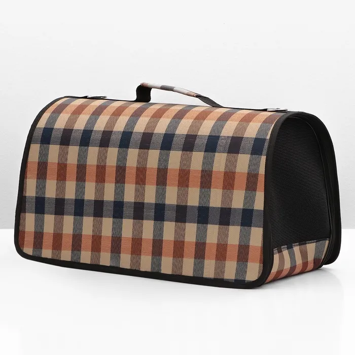 Сумка-переноска каркасная со шторкой, размер L, 53 х 22 х 29 см, клетчатая