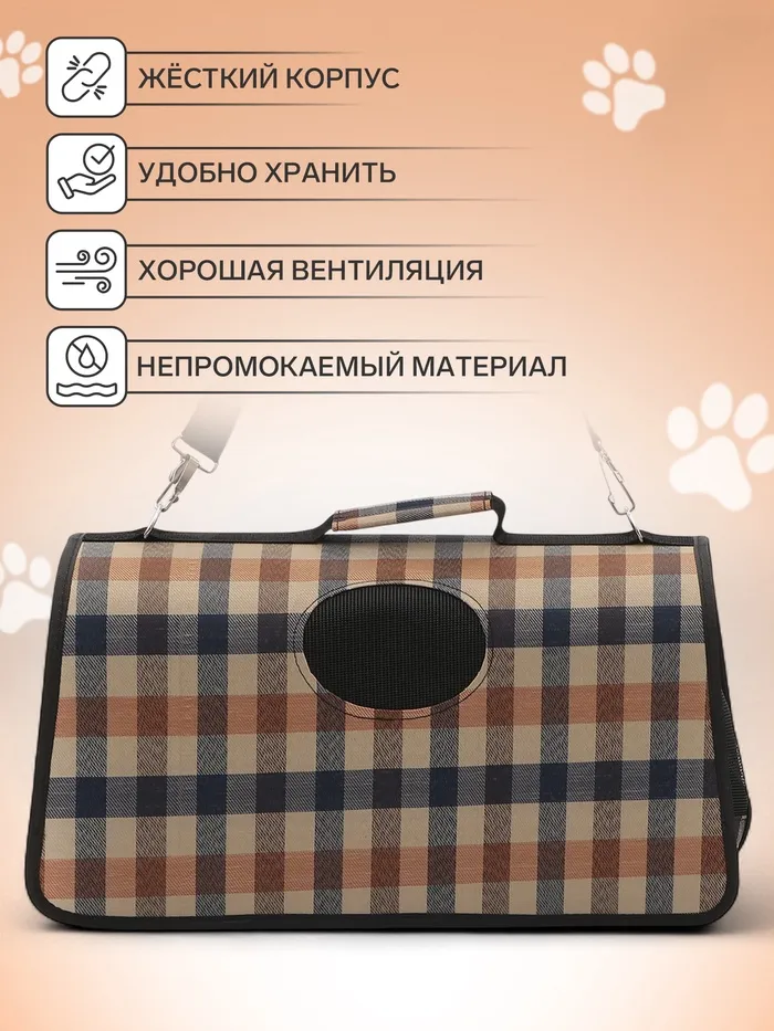 Сумка-переноска каркасная со шторкой, размер L, 53 х 22 х 29 см, клетчатая — Характеристики