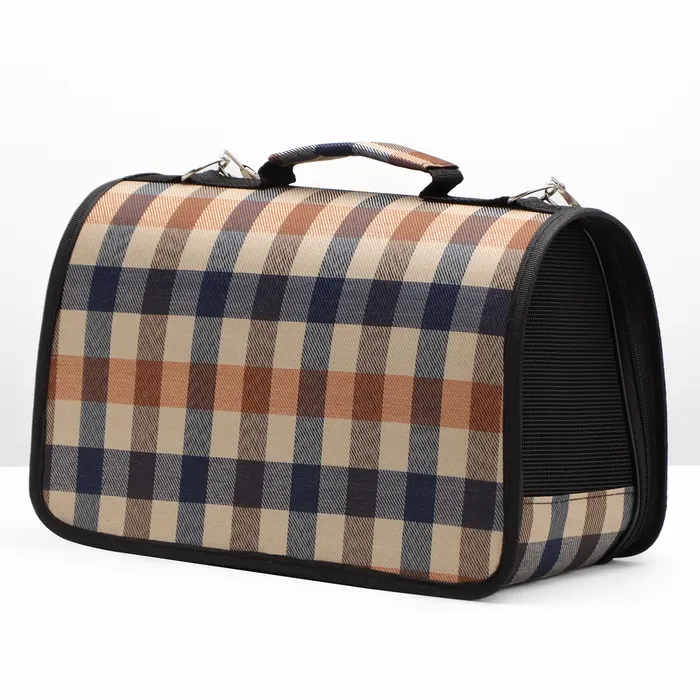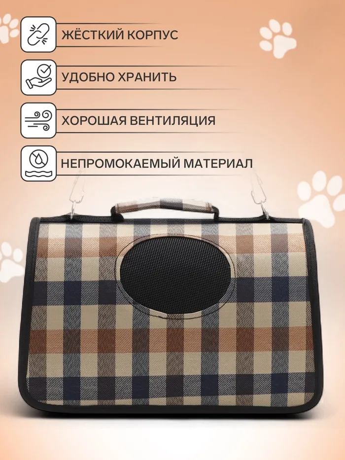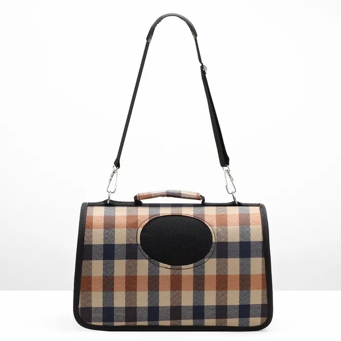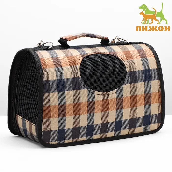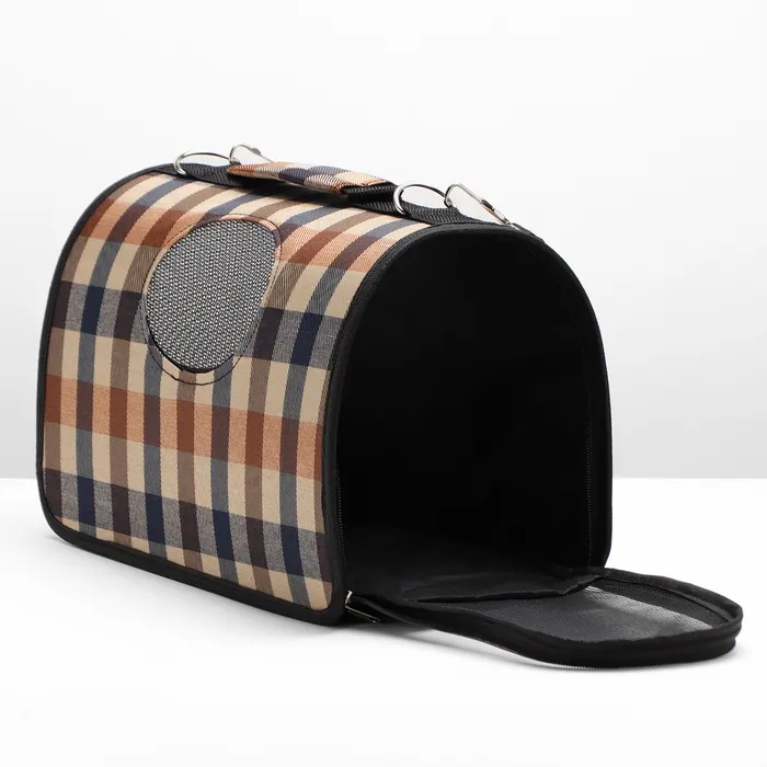 Сумка-переноска каркасная со шторкой, размер S, 37 х 20х 24 см, клетчатая — Характеристики