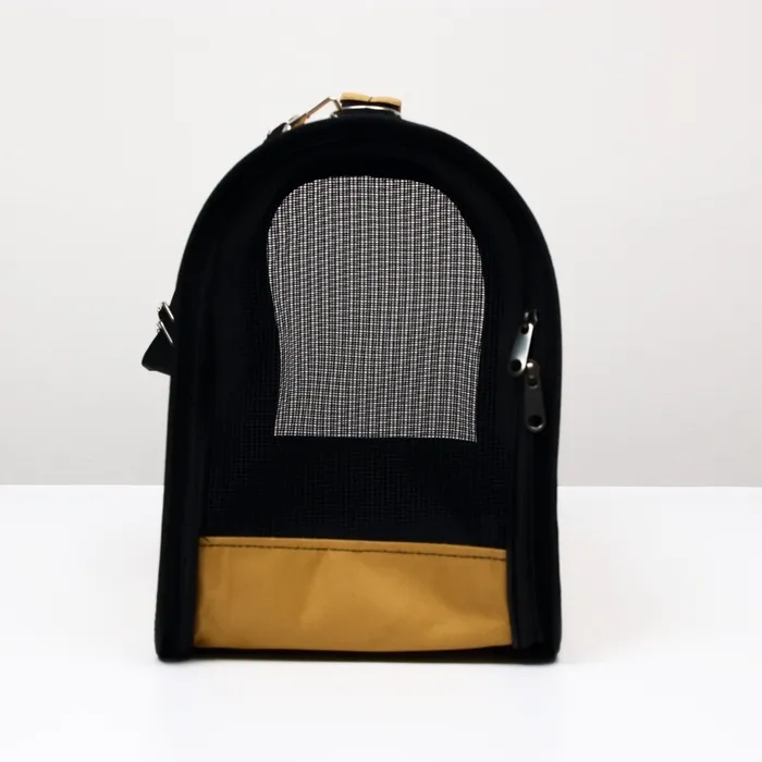 В дно переноски вшит плотный картон, который обеспечивает твердую основу и защищает животное от вибраций и ударов. Прозрачная сетка позволяет питомцу наблюдать за окружающим миром и получать достаточно свежего воздуха.