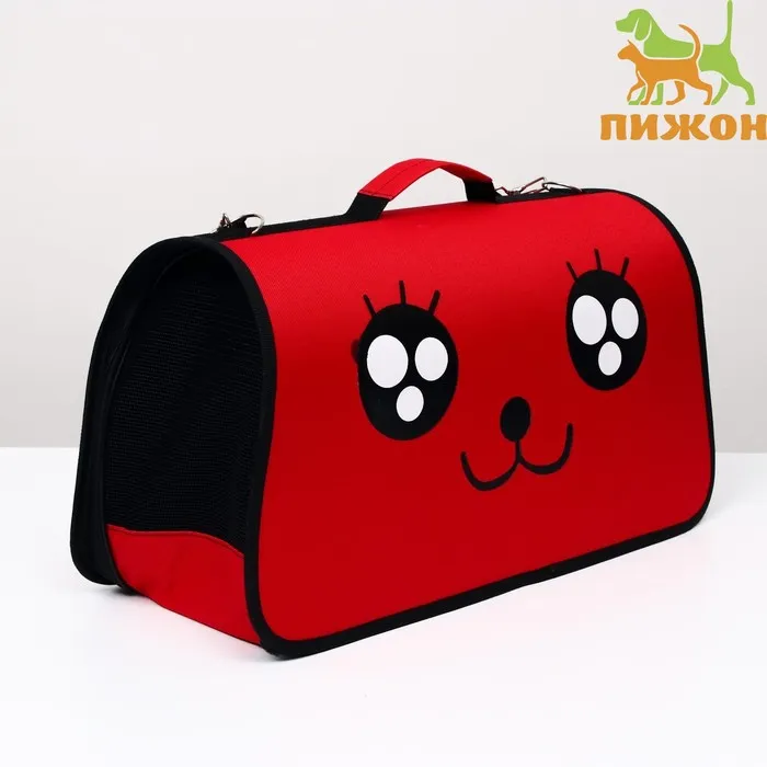 Сумка-переноска каркасная "Весёлый пес", размер L, 53 х 21 х 29 см, красная