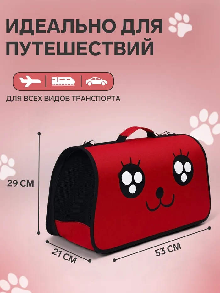 Сумка-переноска каркасная "Весёлый пес", размер L, 53 х 21 х 29 см, красная — Характеристики