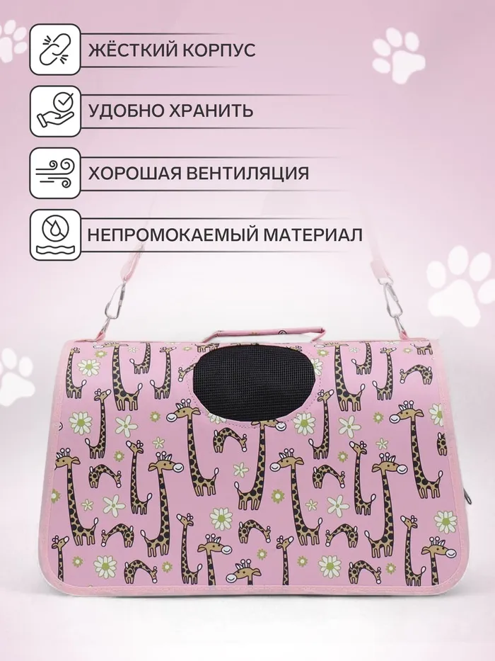 Сумка-переноска с каркасом и рисунком жирафов — это удобный и стильный аксессуар для транспортировки вашего питомца. Подходит для кошек и некрупных собак. Благодаря продуманной конструкции и качественным материалам, переноска обеспечивает комфорт и безопасность во время путешествий.
