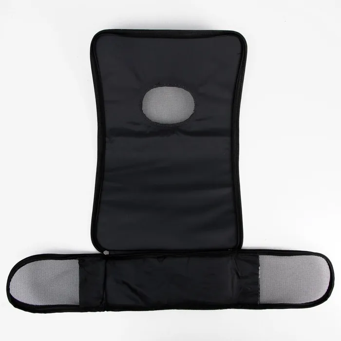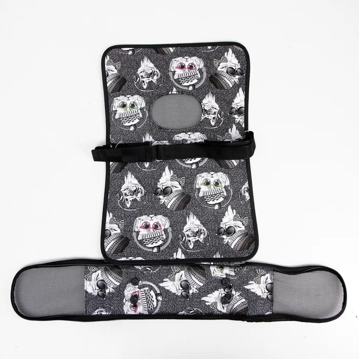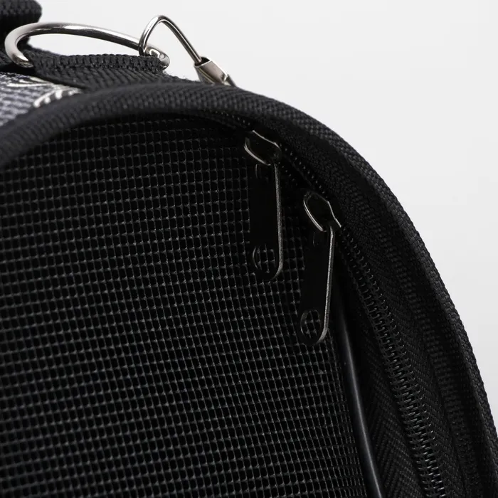 В дно переноски вшит плотный картон, который обеспечивает твердую основу и защищает животное от вибраций и ударов. Прозрачная сетка позволяет питомцу наблюдать за окружающим миром и получать достаточно свежего воздуха.