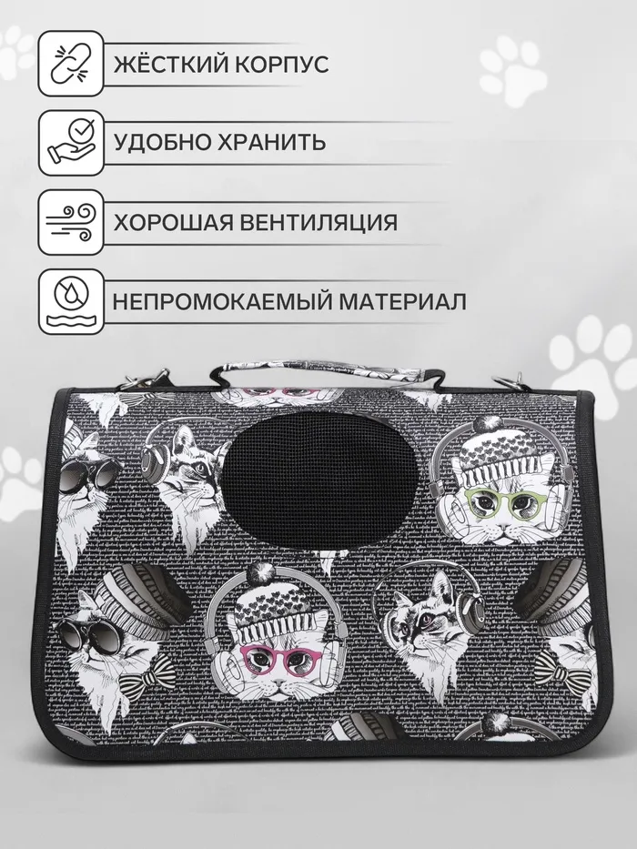 Сумка-переноска каркасная "Зимние коты", размер S, 37,5 х 17 х 22 см — Характеристики