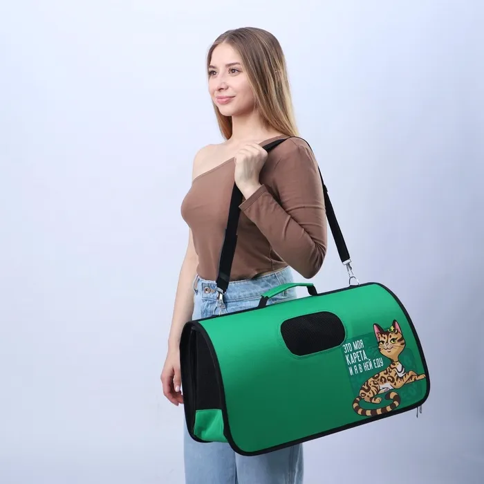 Прочная и непромокаемая каркасная сумка-переноска подходит для кошек весом до 7 кг.