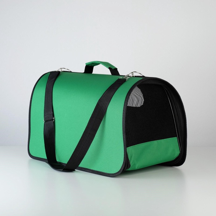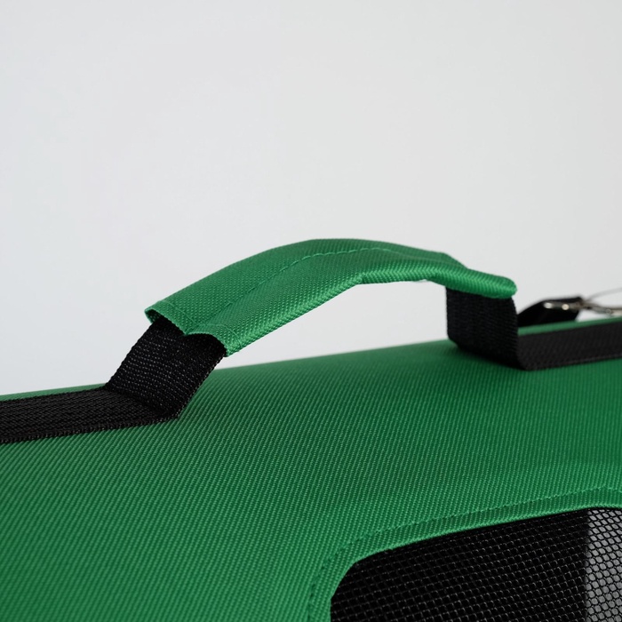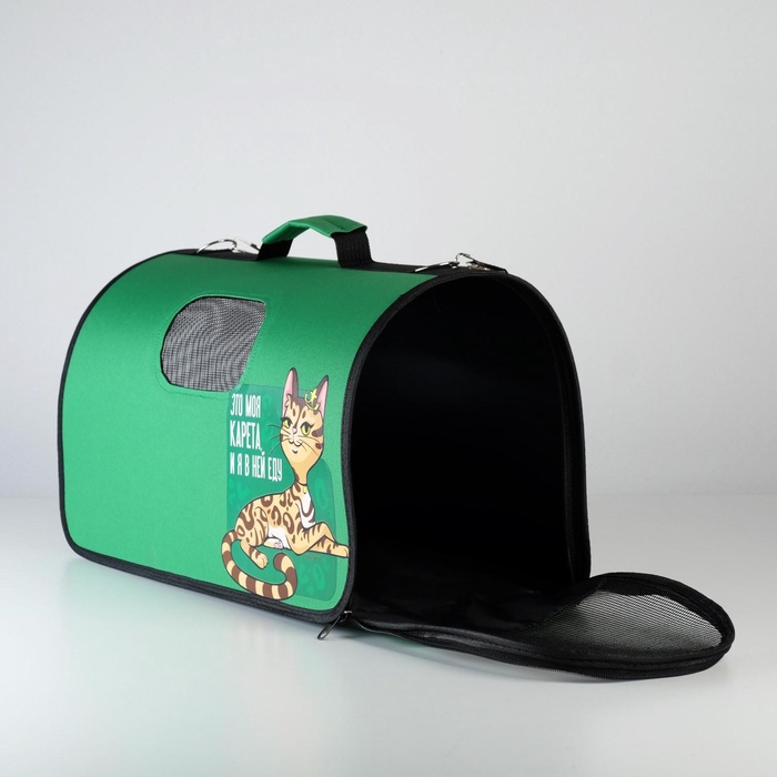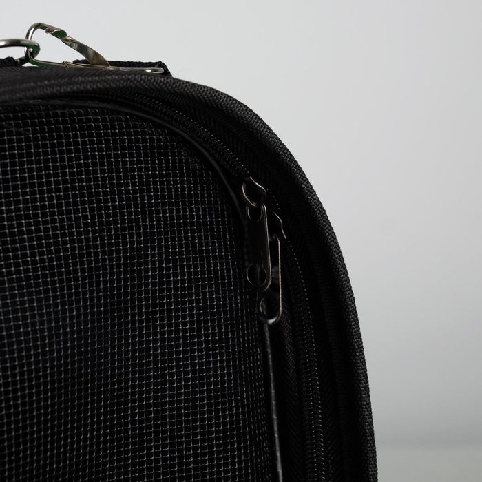 Изделие выполнено из прочной непромокаемой ткани, имеет жёсткие стенки и хорошо держит форму. Благодаря жёсткому дну питомцу будет комфортно в поездках. 3 сетки обеспечивают отличную вентиляцию, а качественная ткань гарантирует отсутствие посторонних запахов. У изделия есть отстёгивающийся и регулируемый ремень, а также качественная молния.