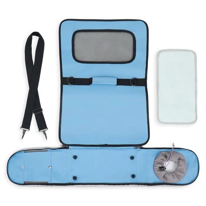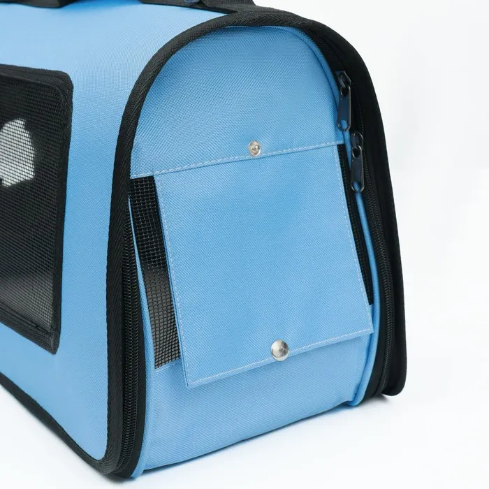 Очаровательная сумка-переноска для домашних питомцев - идеальное решение для комфортной и безопасной транспортировки вашего любимца! Эта сумка обладает несколькими уникальными особенностями, которые превратят путешествие в приятное и удобное занятие как для вас, так и для вашего питомца.Сумка подойдет кошкам и собакам средних пород. Максимальная нагрузка 5 кг.Первое, на что обращает внимание - это красивый голубой цвет сумки, который добавляет ей стильности и элегантности. Основное отличие этой сумки от других - наличие отверстия для мордочки, которое позволяет ему наслаждаться свежим воздухом и окружающими видами. Благодаря этому отверстию, ваш питомец сможет безопасно и комфортно наблюдать за окружающим миром во время переноски.Сетчатые стенки и окошко - это еще одно преимущество этой сумки. Они обеспечивают отличную вентиляцию, предотвращают излишнюю потливость вашего питомца и создают комфортную температуру внутри сумки. Кроме того, сетчатые стенки обеспечивают хорошую видимость внутрь для более легкого контроля над питомцем.Сумка оснащена ручкой в верхней части и ремешком, вы можете носить сумочку с вашим любимцем в руках или же через плечо, освободив руки.Эта сумка-переноска изготовлена из качественных и прочных материалов, которые гарантируют долгий срок службы. Вместительная и удобная, она идеально подходит для переноски маленьких домашних питомцев, таких как кошки, собаки, кролики и многие другие.Не упустите возможность позволить вашему питомцу путешествовать с комфортом и безопасностью!