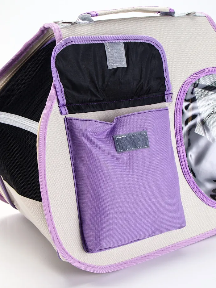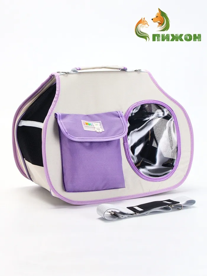 Сумка-переноска с органайзером и окном — это удобное и функциональное решение для перевозки вашего питомца. Бело-сиреневая расцветка, компактные размеры и продуманная конструкция делают её идеальным выбором для поездок и прогулок.