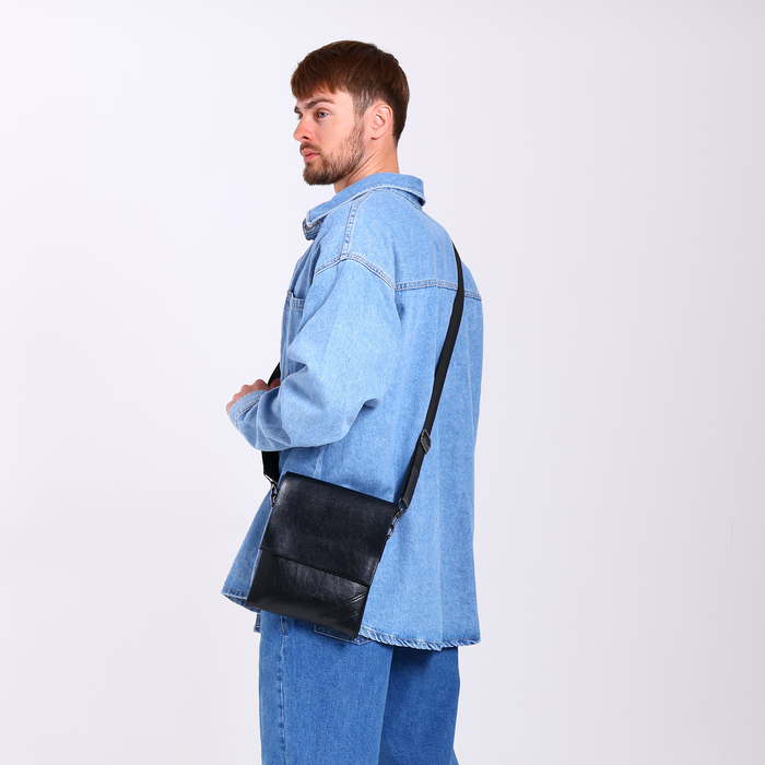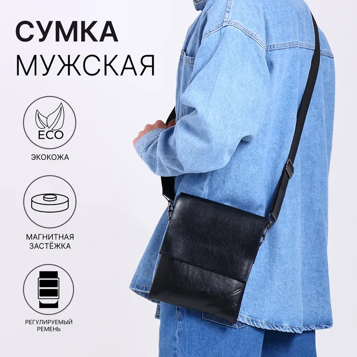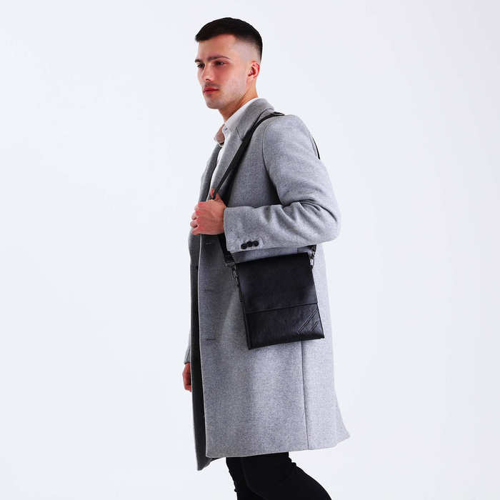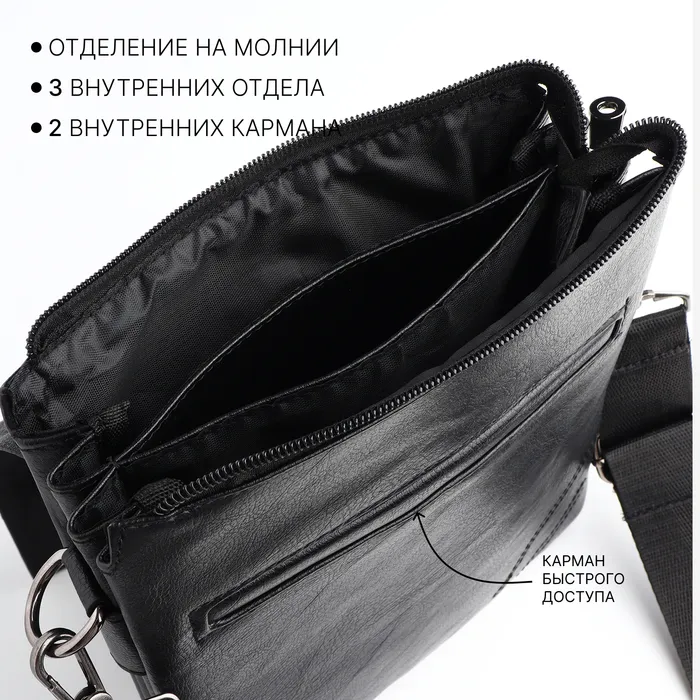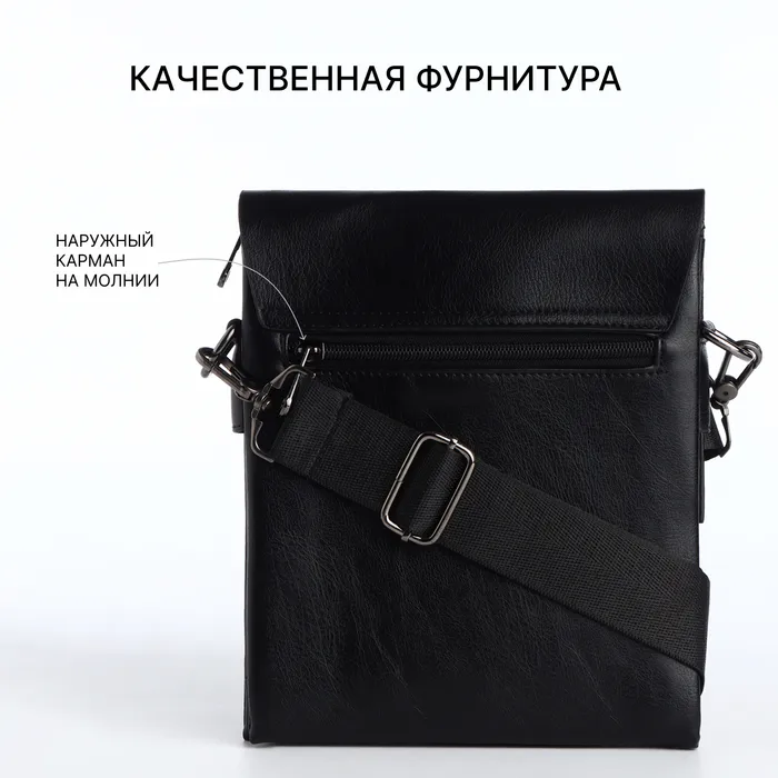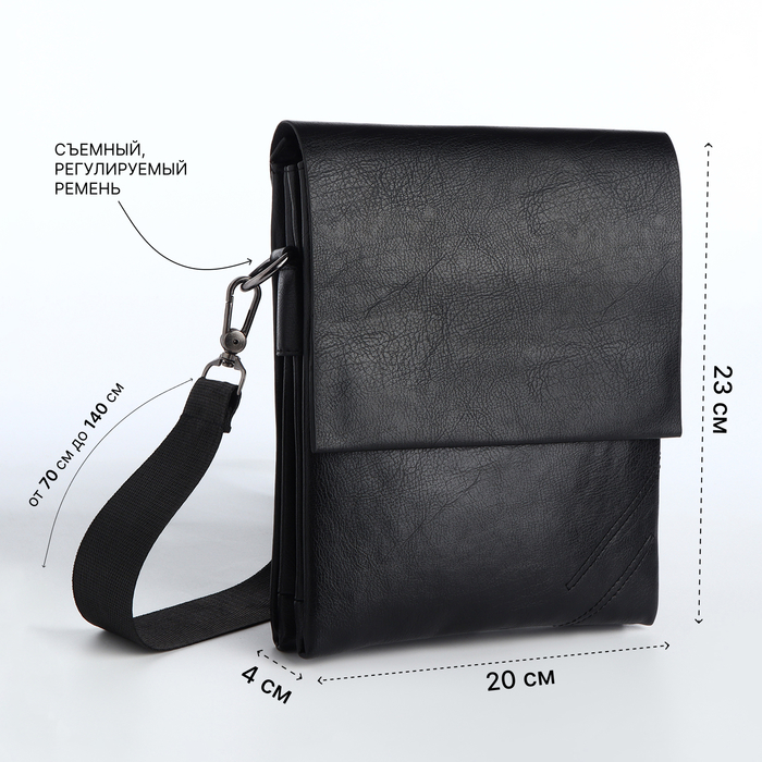 Сумка планшет мужская, 3 отдела на молнии, 2 наружных кармана, 20×4×23 см, чёрная — Характеристики