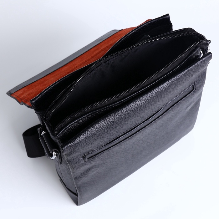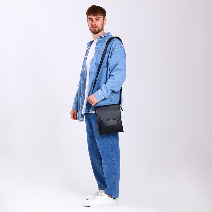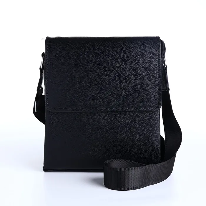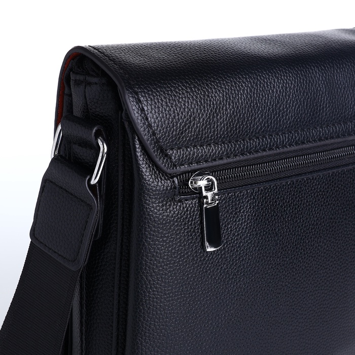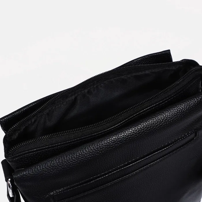 Сумка планшет мужская, 3 отдела на молнии, 2 наружных кармана, регулируемый ремень, 22×5×25 см, чёрная — Характеристики