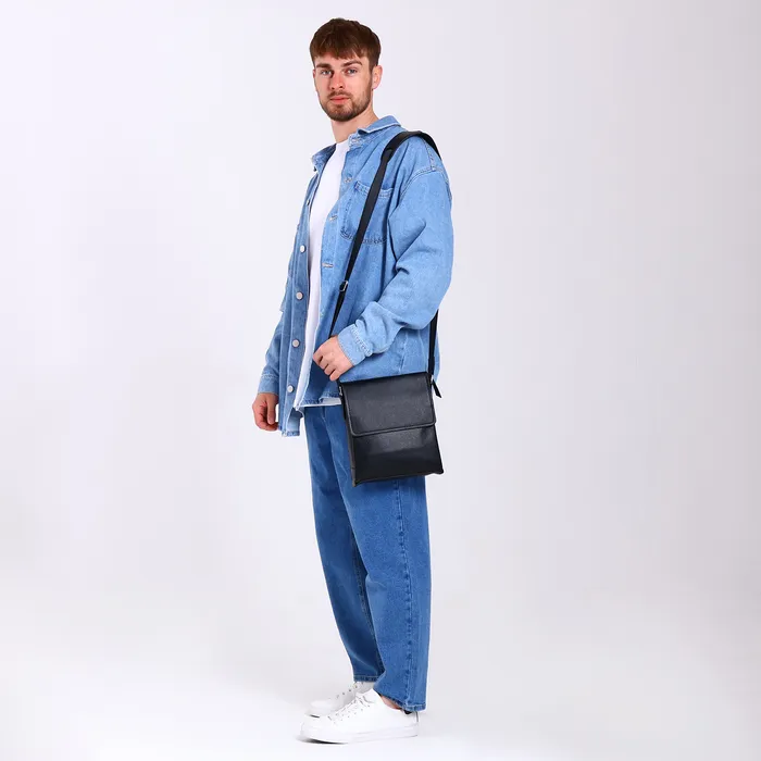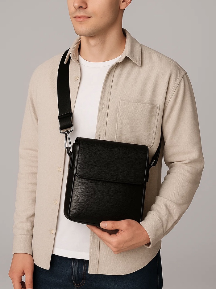 Элегантная мужская сумка через плечо станет вашим надёжным спутником в повседневной жизни. Этот стильный аксессуар подчеркнёт мужественный образ и добавит удобства в повседневные дела. Изготовленная из прессованной кожи, сумка сочетает прочность и современный дизайн.