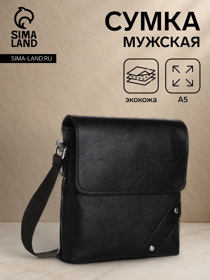 Сумка планшет мужская, на молнии, 2 наружных кармана, 23×4×23.5 см, чёрная — Характеристики