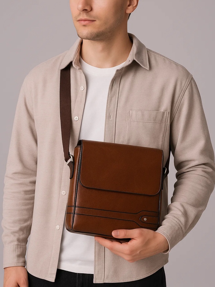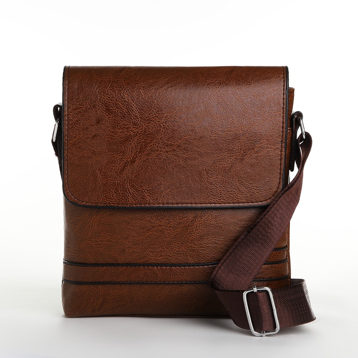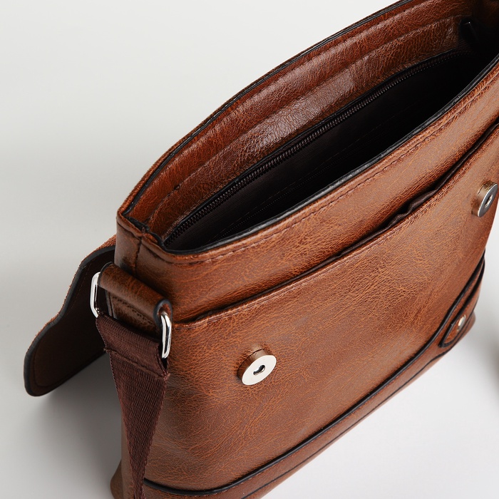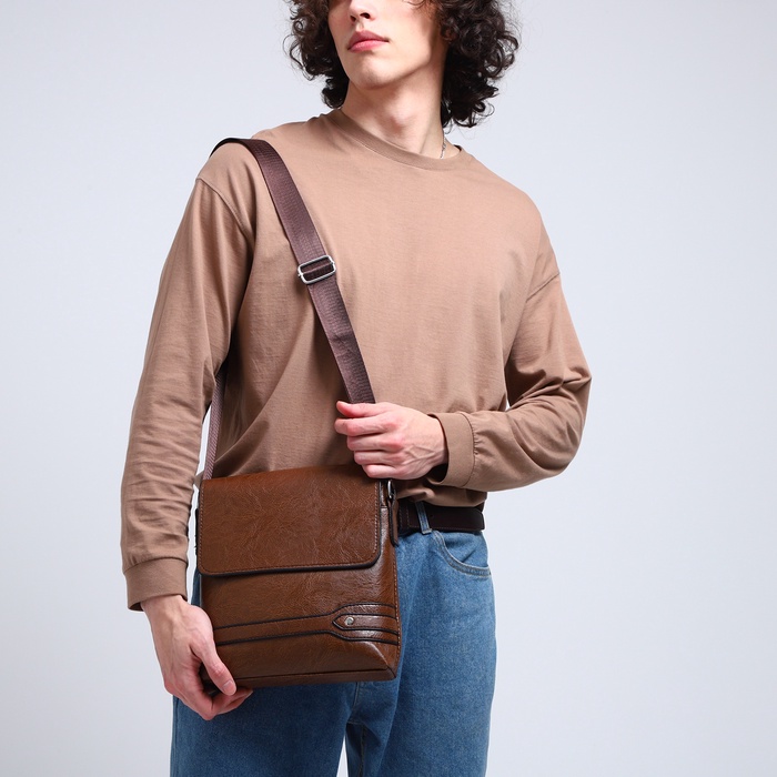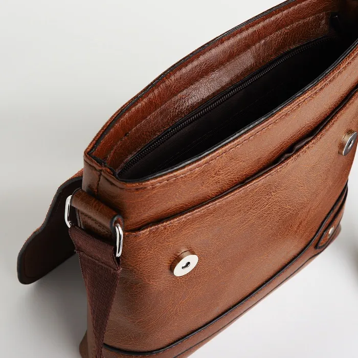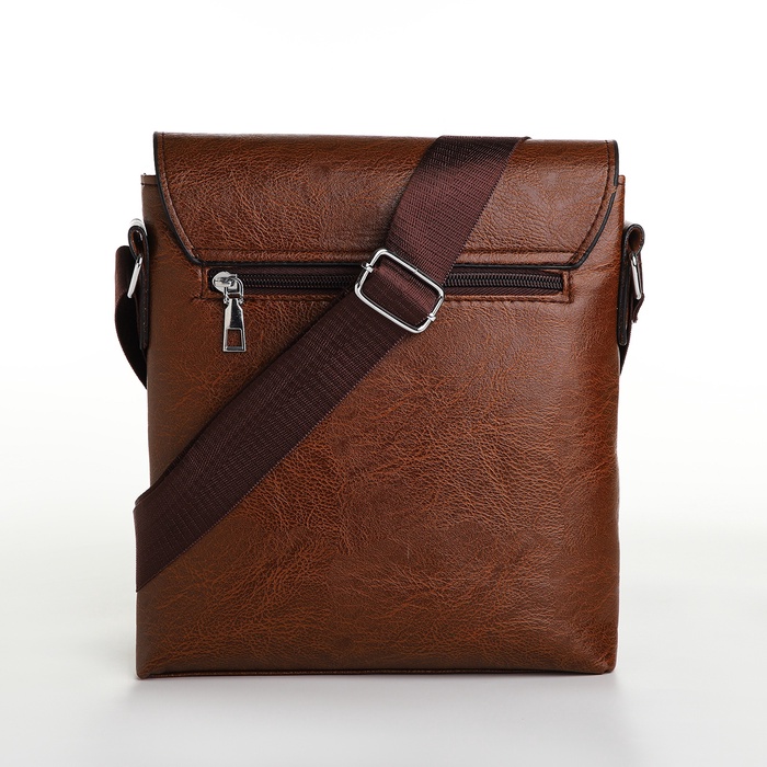 Сумка планшет мужская, на молнии, 2 наружных кармана, 23×4×23.5 см, коричневая — Характеристики