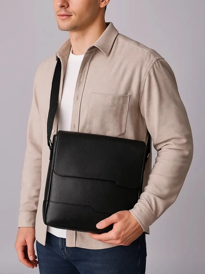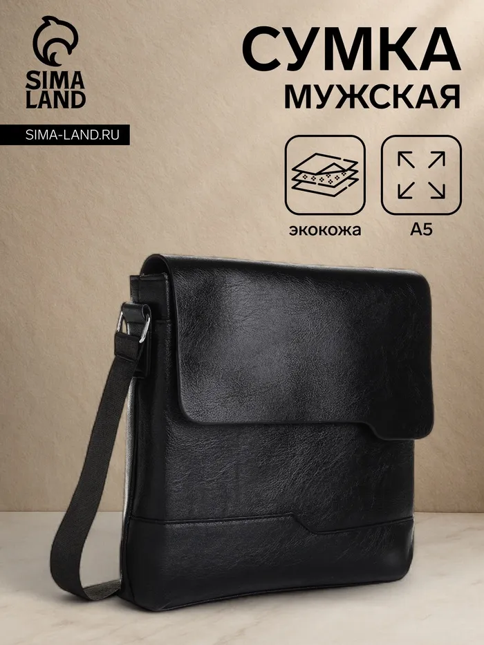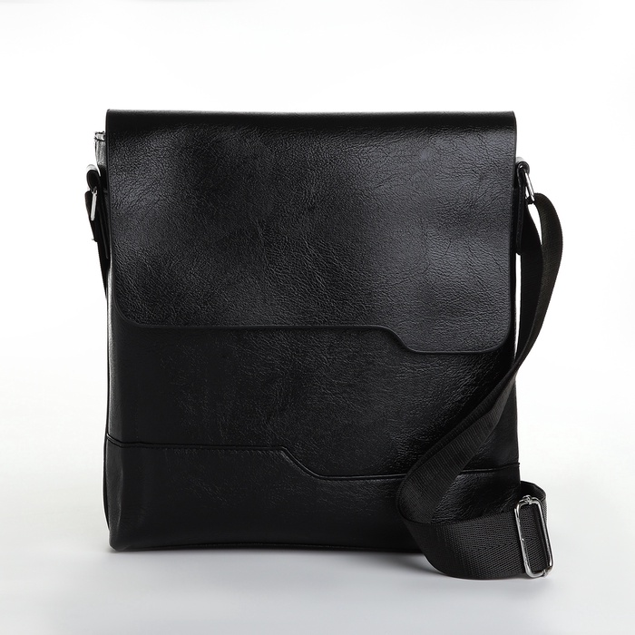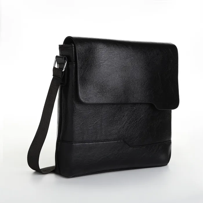 Сумка планшет мужская, на молнии, 2 наружных кармана, 27×4.5×27 см, чёрная — Характеристики