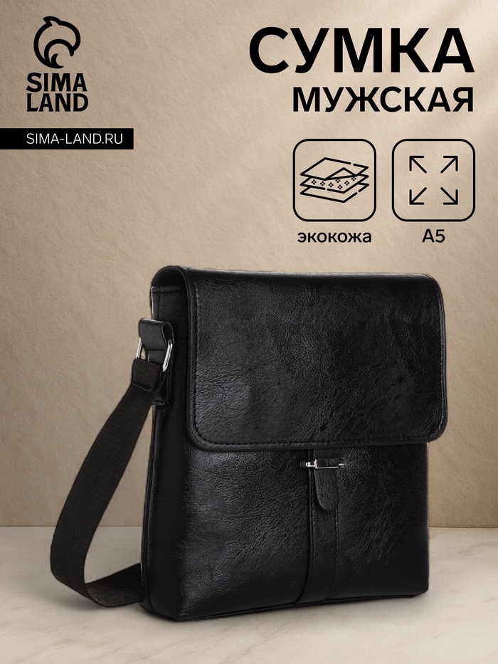 Сумка планшет мужская, на молнии, с наружными карманами, 23×4×23.5 см, чёрная — Характеристики