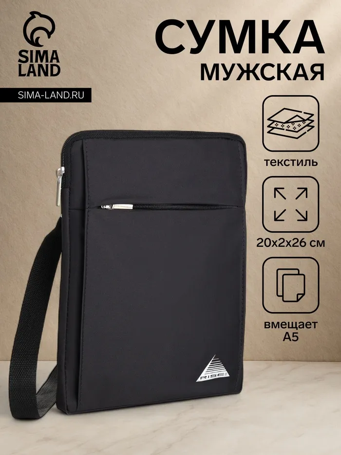 Сумка планшет мужская RISE, чёрная — Характеристики