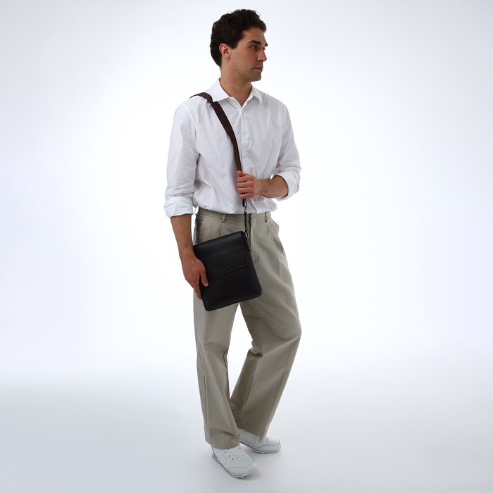 Сумка планшет мужская TEXTURA, 2 отдела на молнии, 2 наружных кармана, коричневая — Характеристики