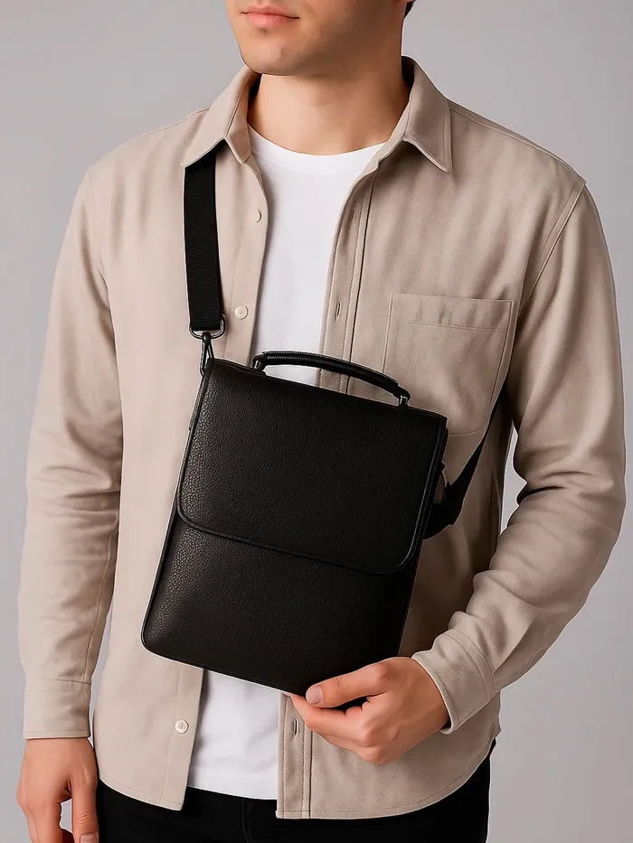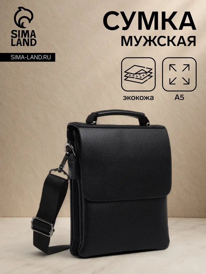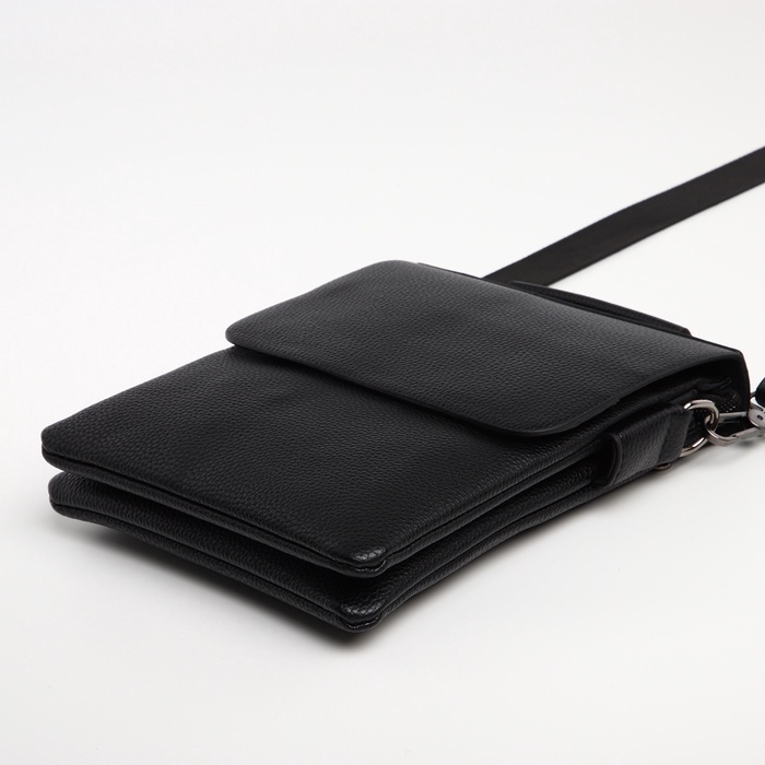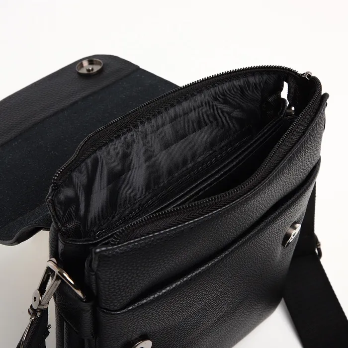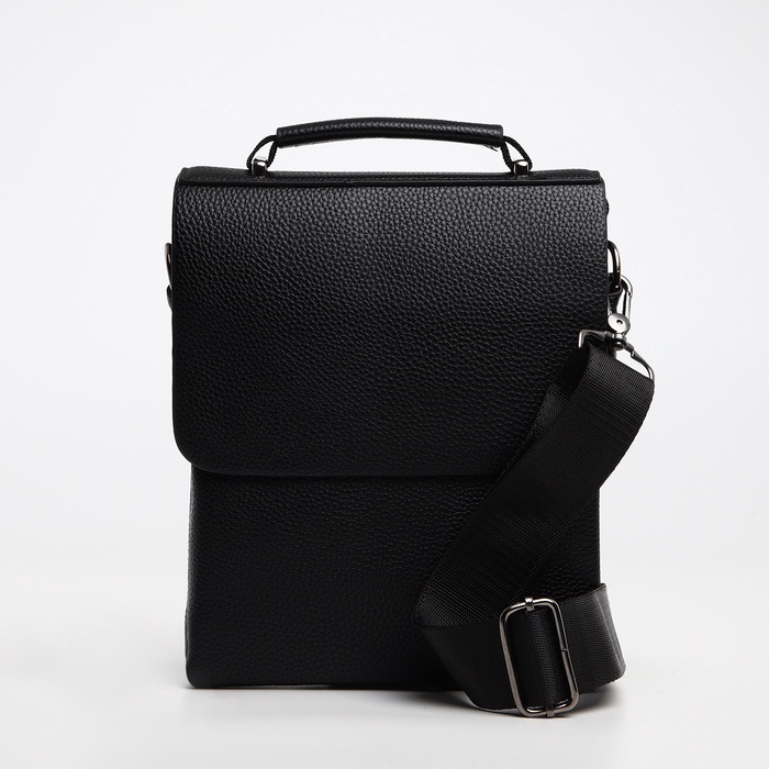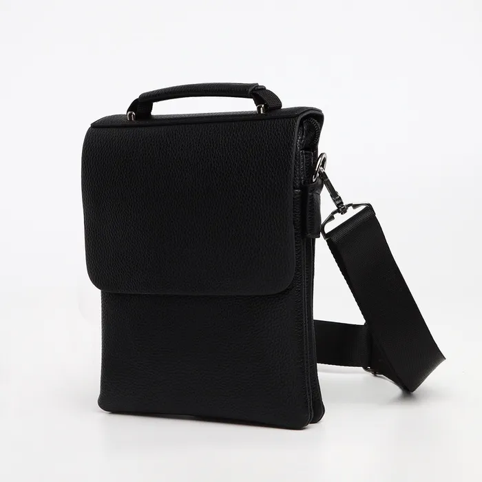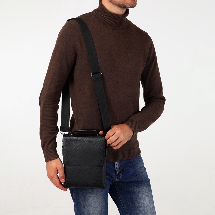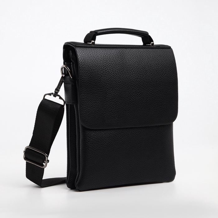 Сумка планшет мужская TEXTURA, 2 отдела на молнии, наружный карман, 19×3×23 см, чёрная — Характеристики
