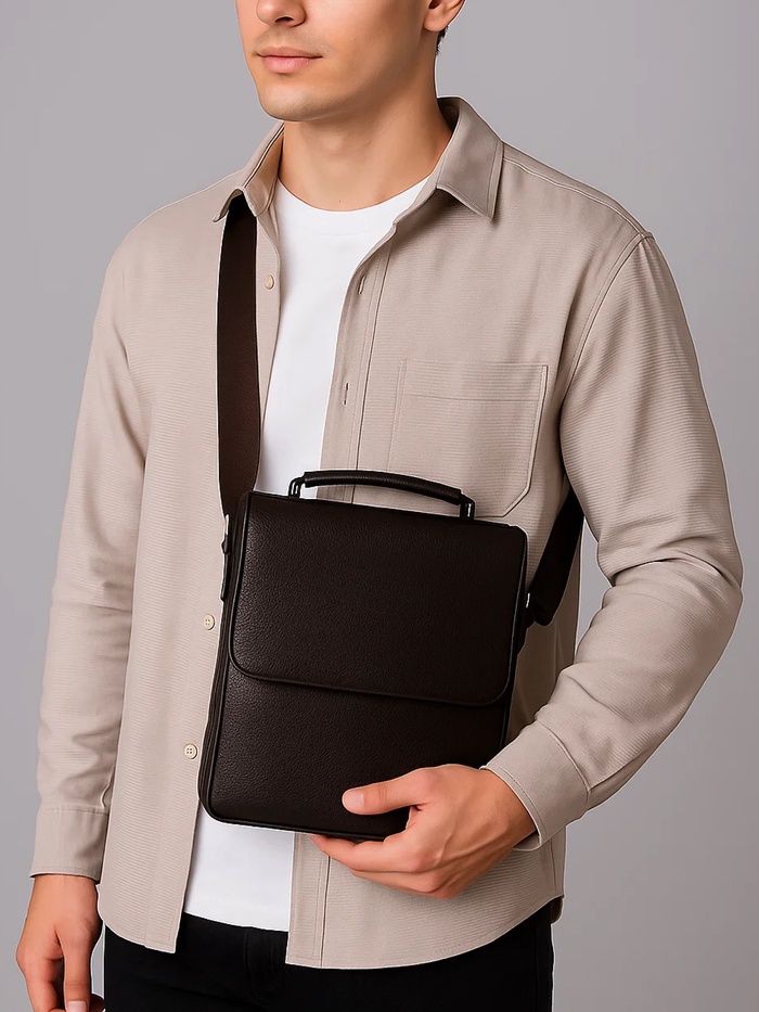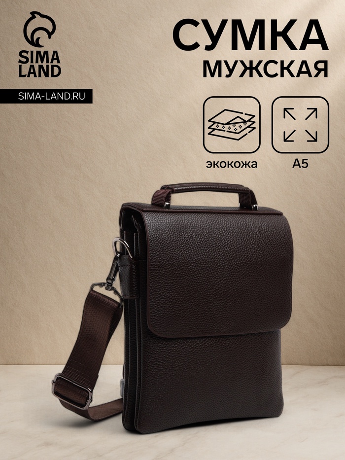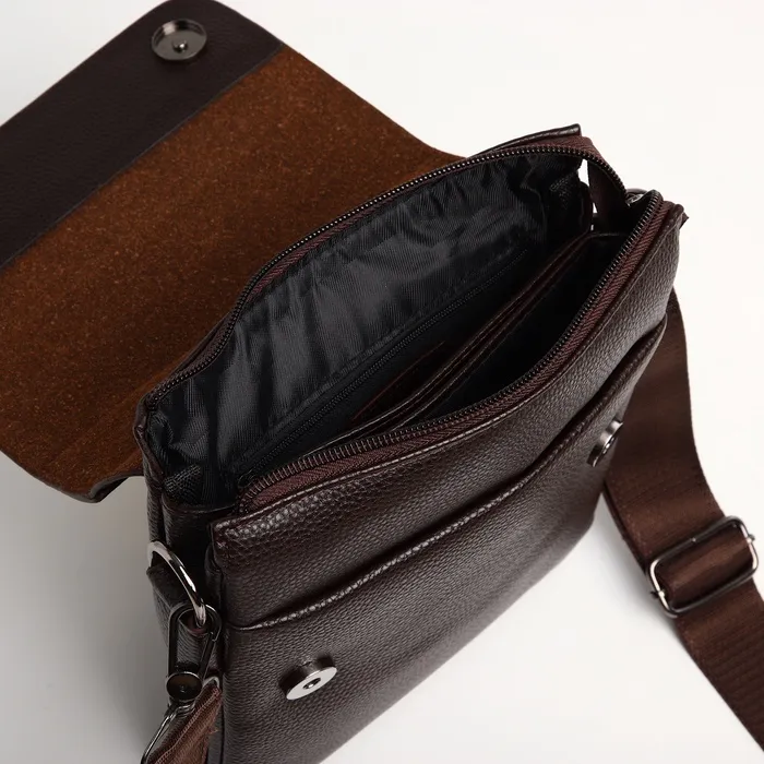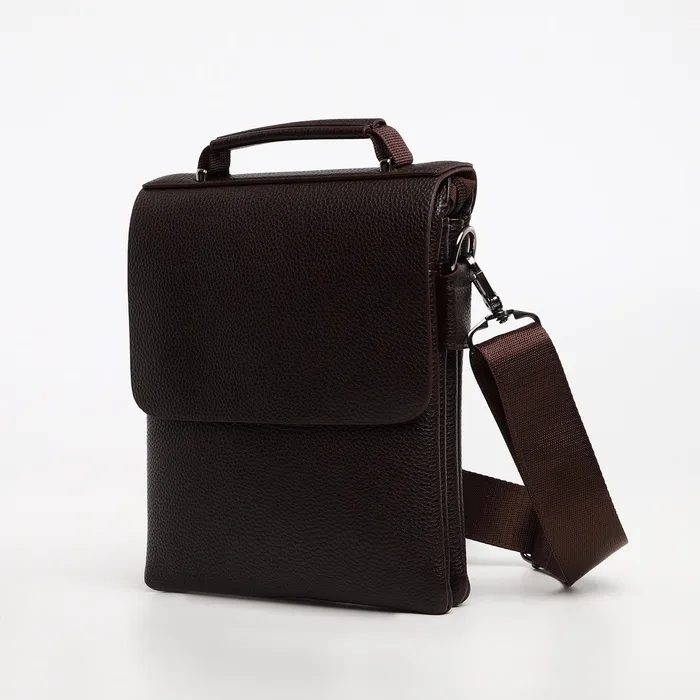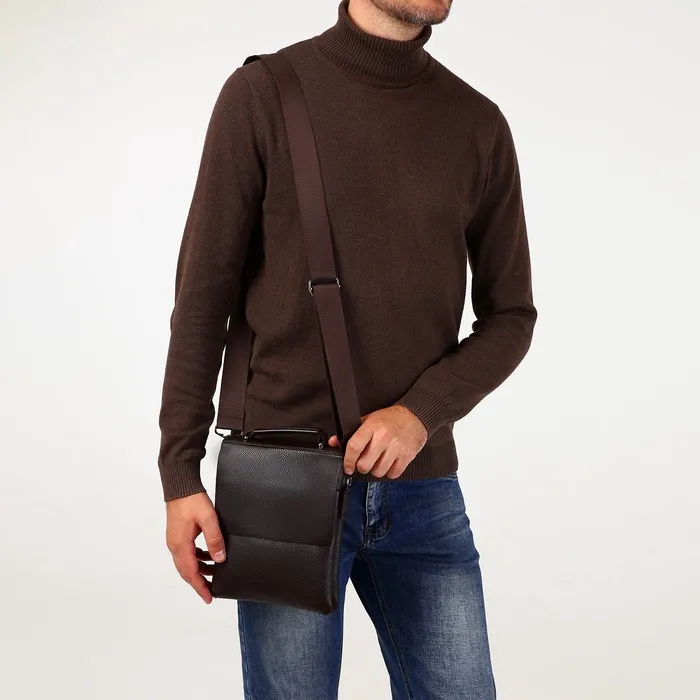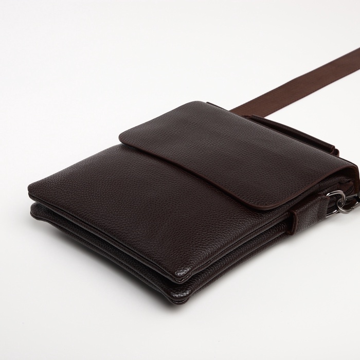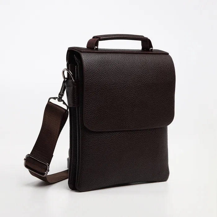 Сумка планшет мужская TEXTURA, 2 отдела на молнии, наружный карман, 19×3×23 см, коричневая — Характеристики