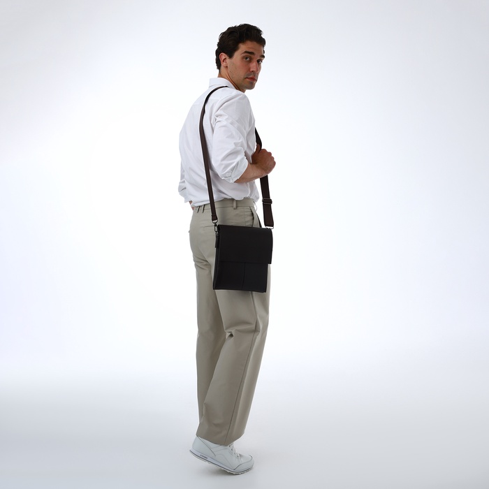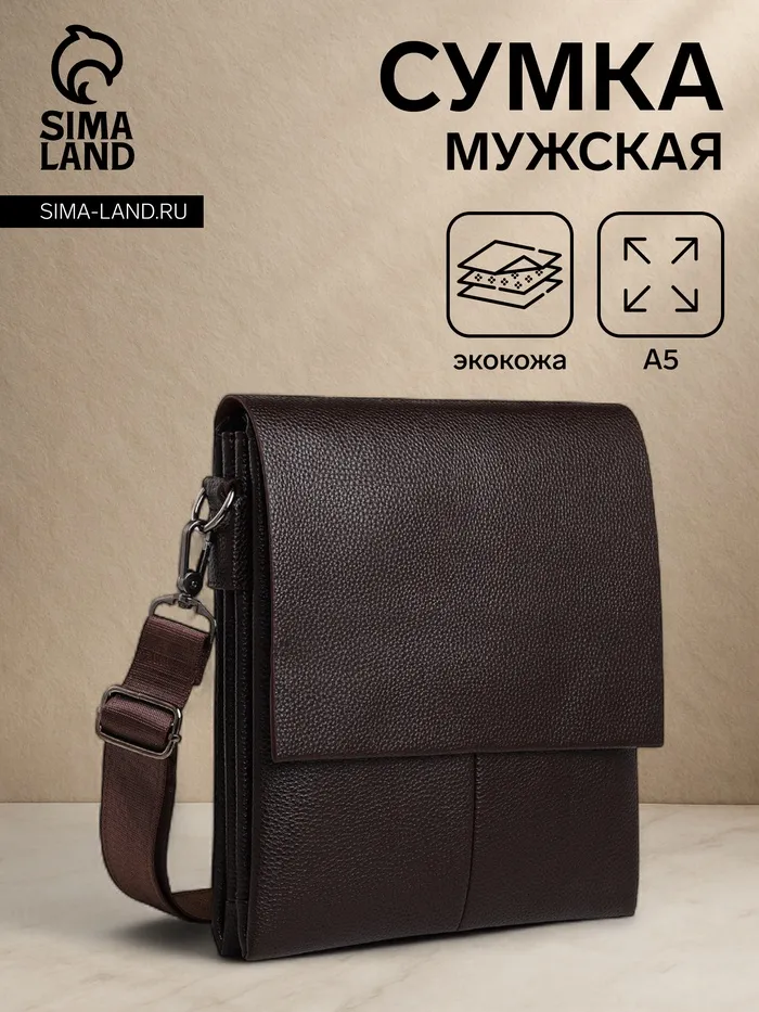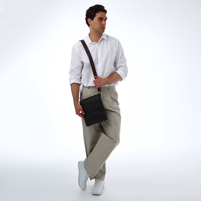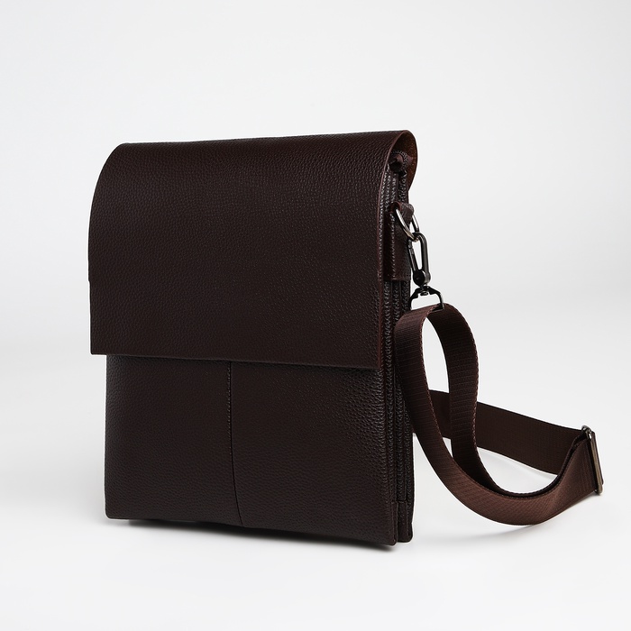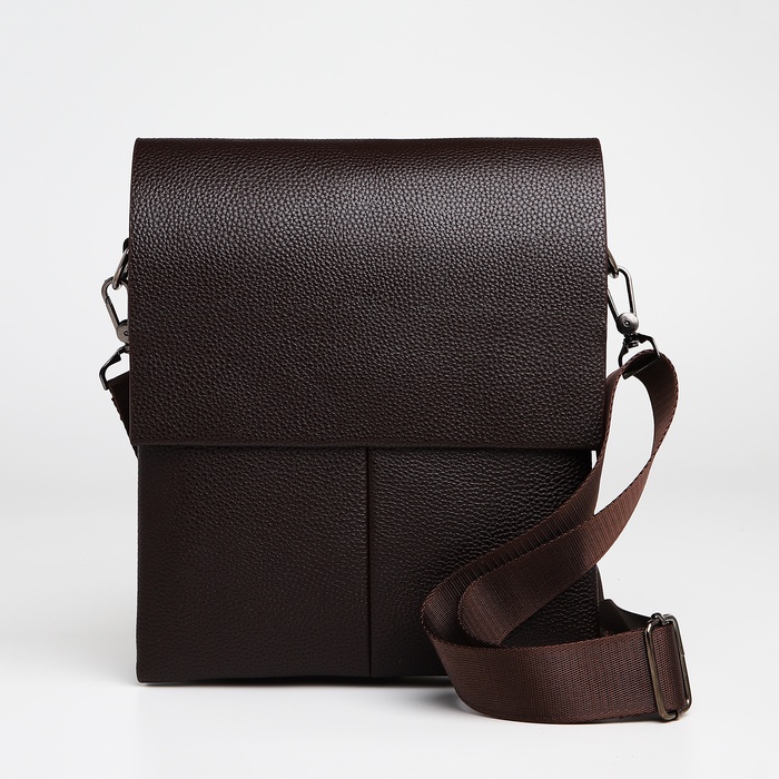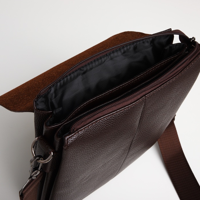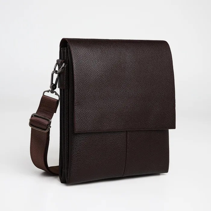Сумка планшет мужская TEXTURA, 2 отдела на молнии, наружный карман, 22×4×26 см, коричневая — Характеристики