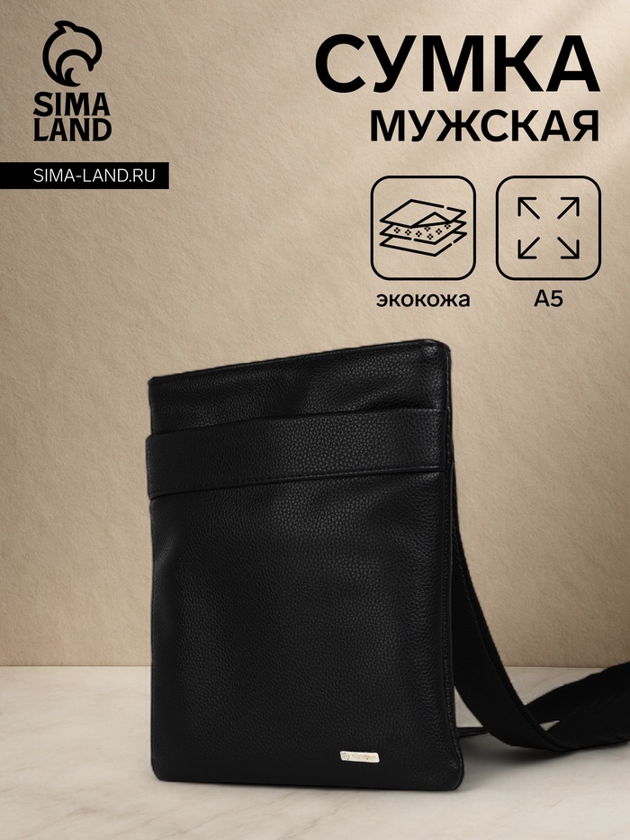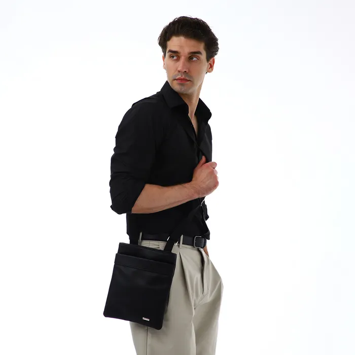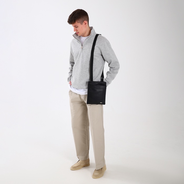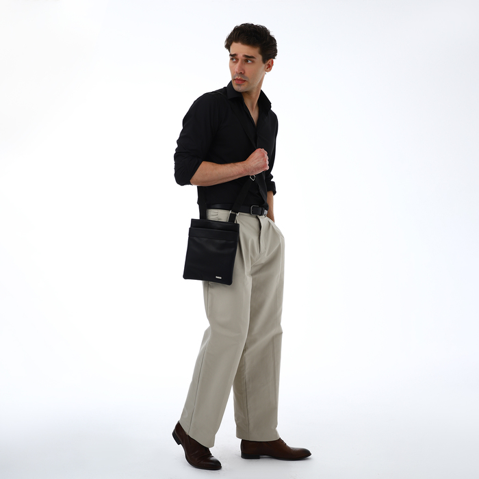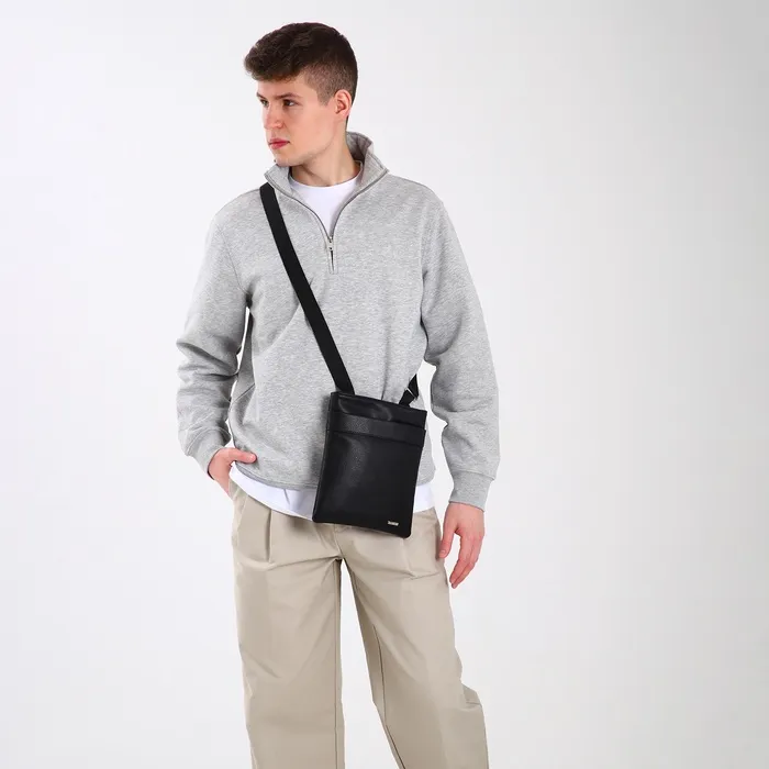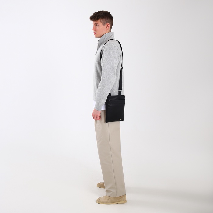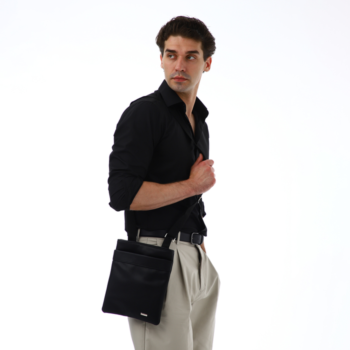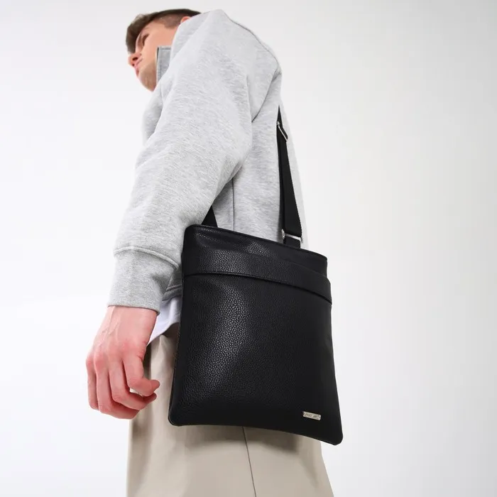 Сумка планшет мужская TEXTURA на молнии, наружный карман, 22×1×25 см, чёрная — Характеристики
