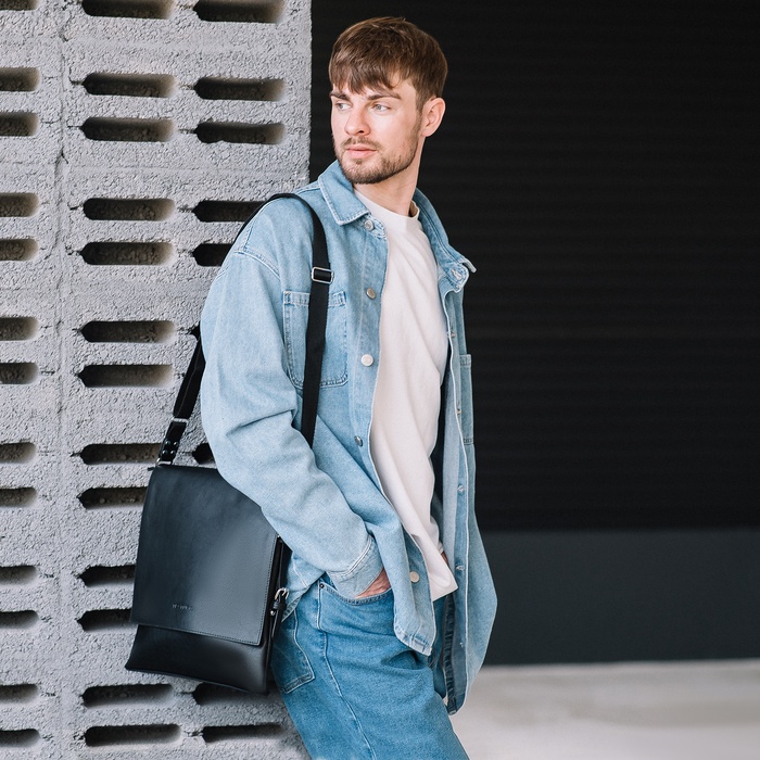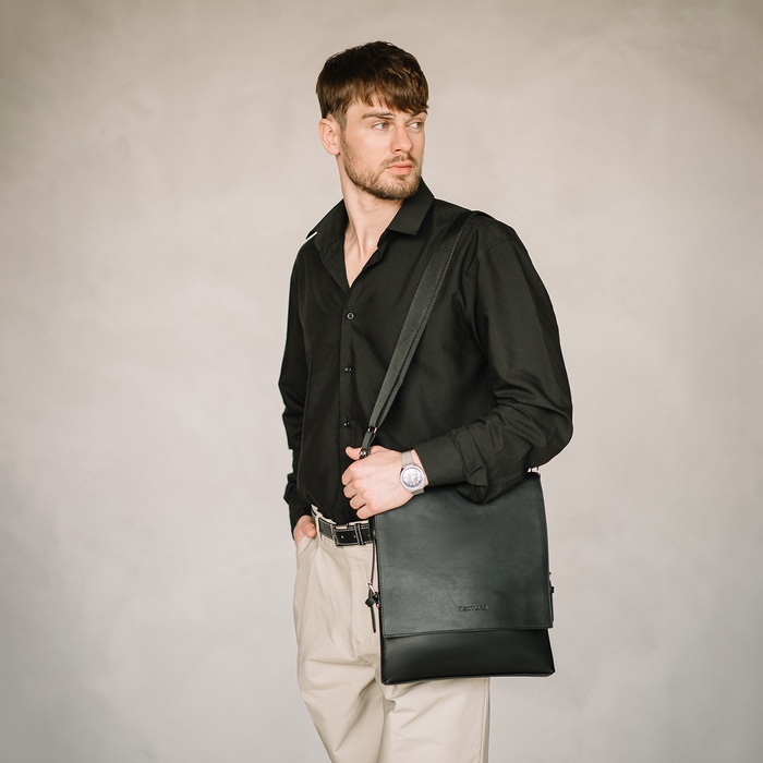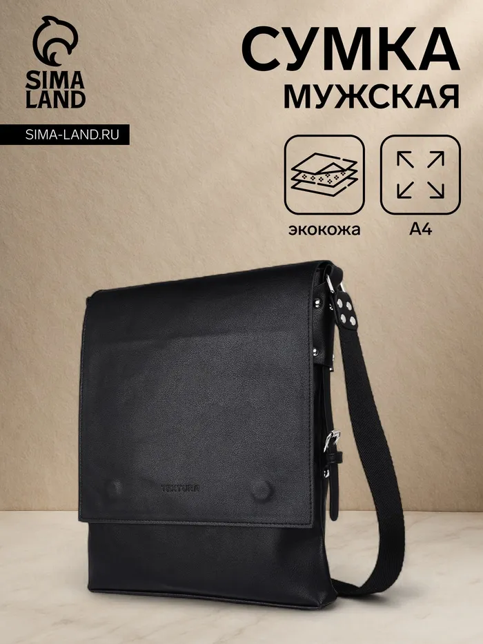 Сумка планшет мужская TEXTURA на молнии, наружный карман, чёрная — Характеристики