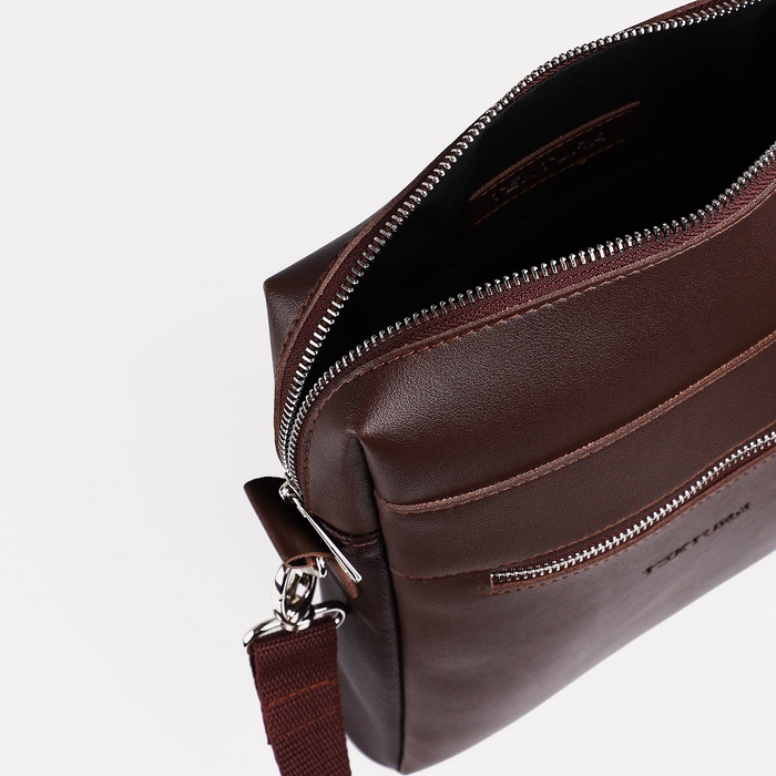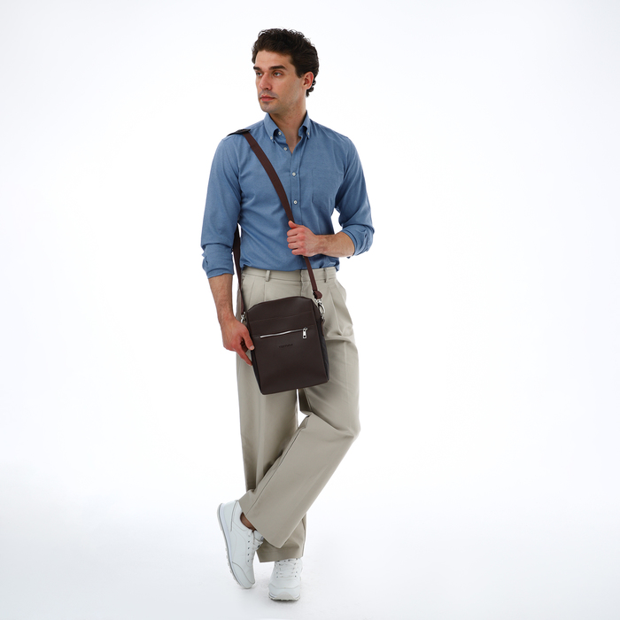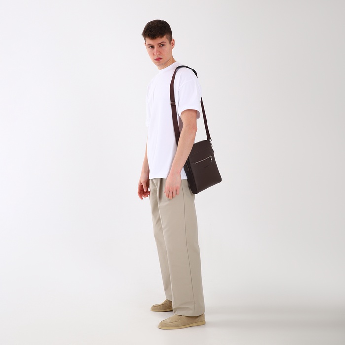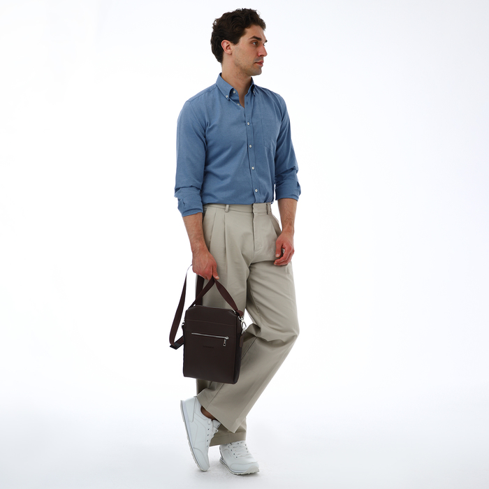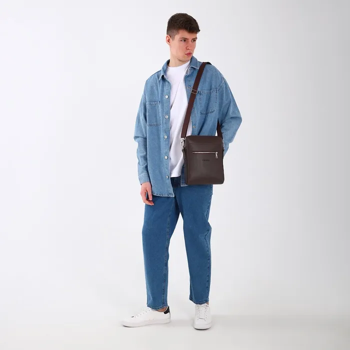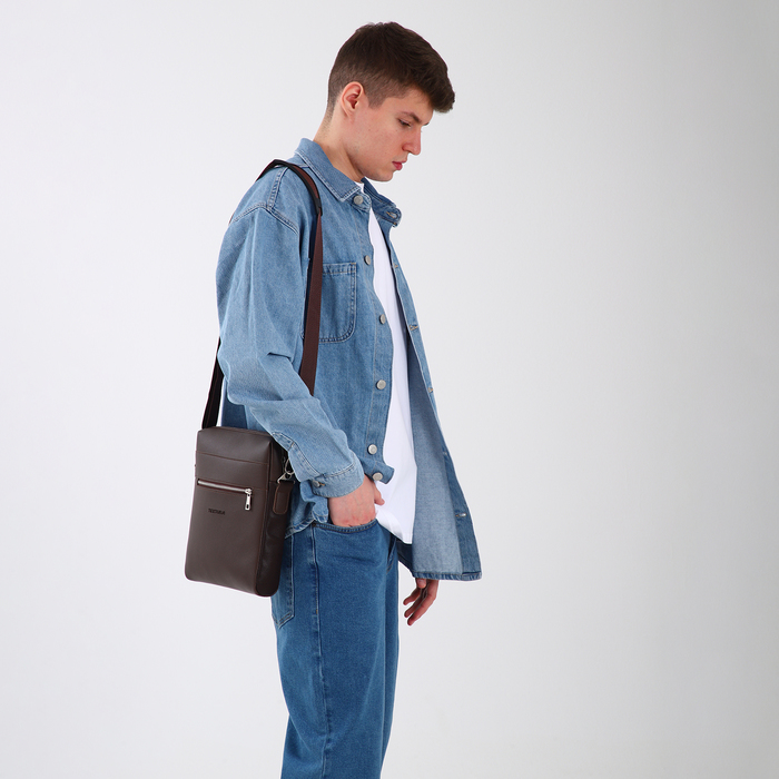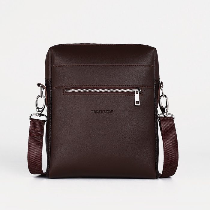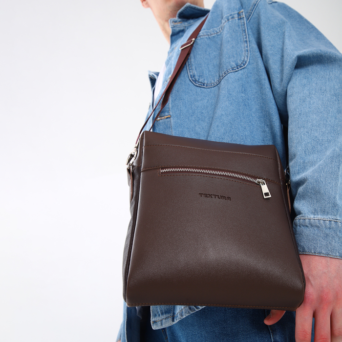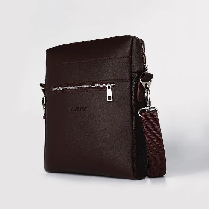 Сумка планшет мужская TEXTURA на молнии, наружный карман, коричневая — Характеристики