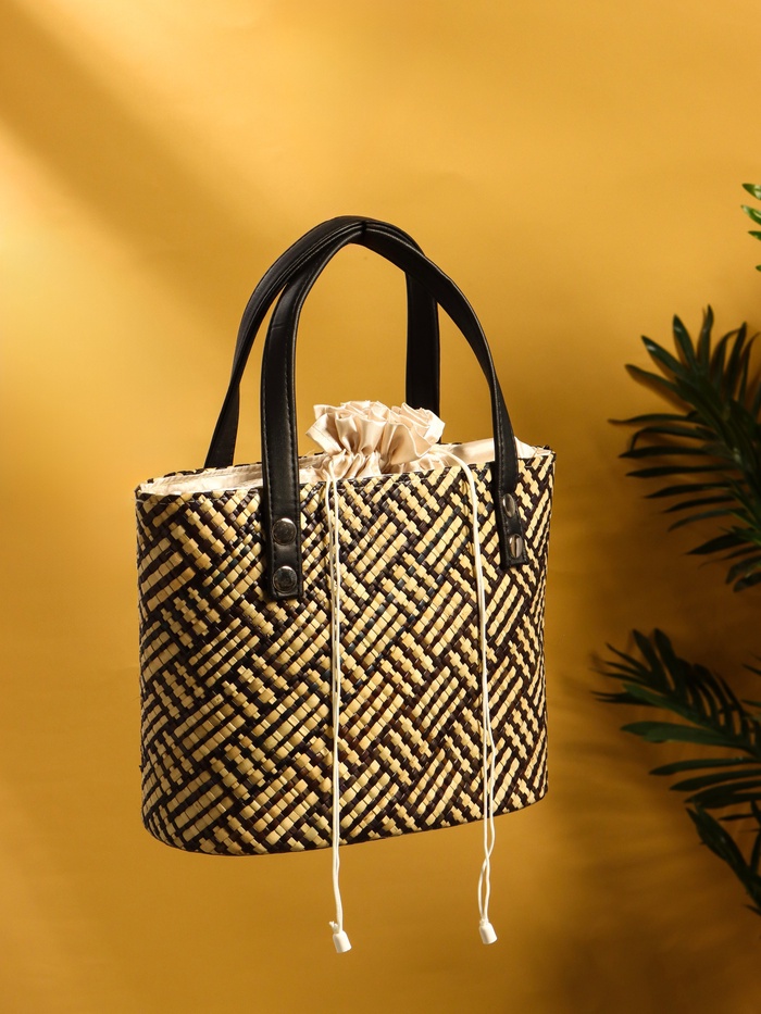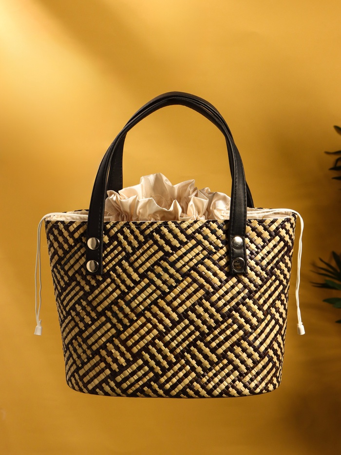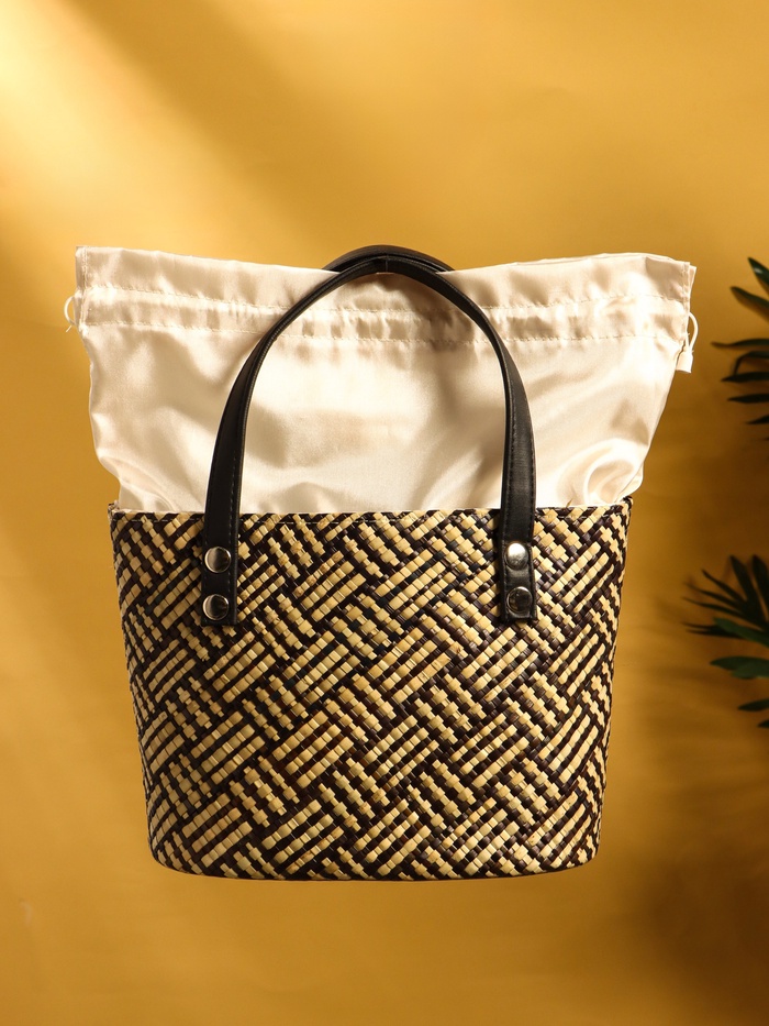 Сумка плетёная из пандана, 25×18×38 см, бежево-коричневая — Характеристики