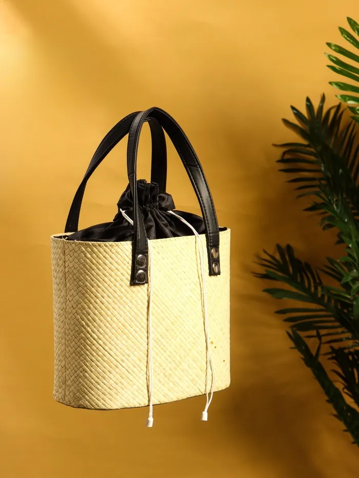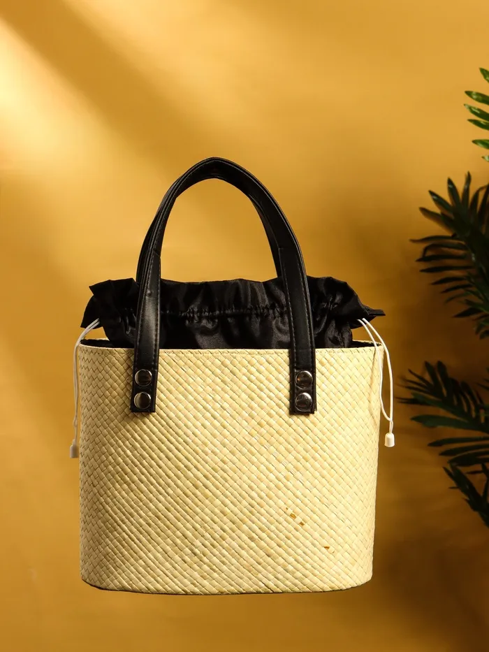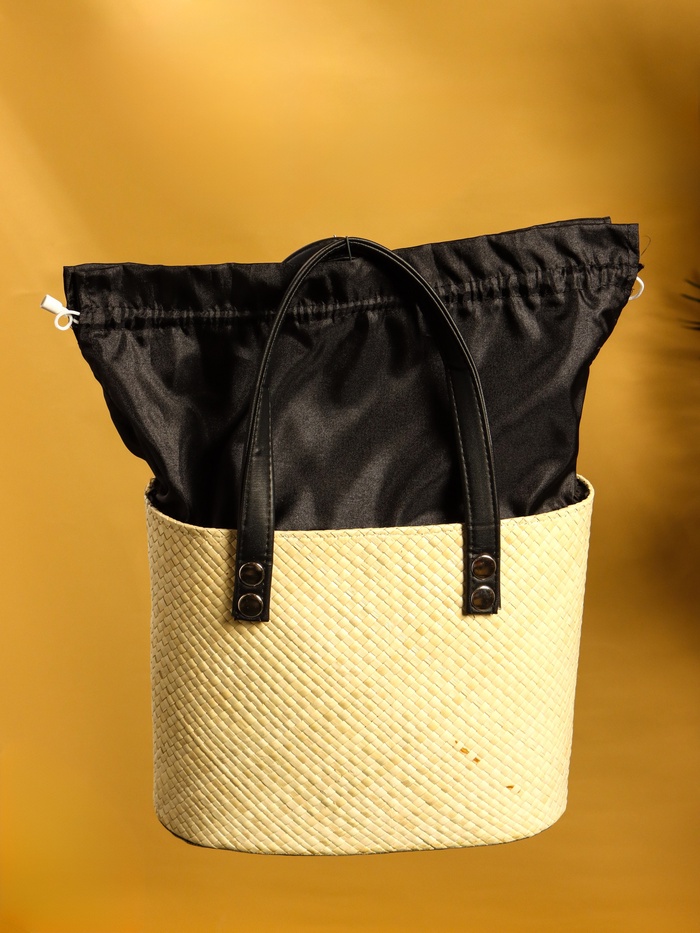 Сумка плетёная из пандана, 26×15×38 см, бежево-чёрная — Характеристики