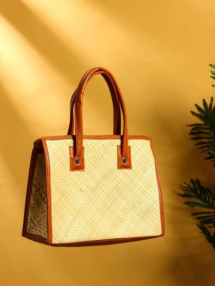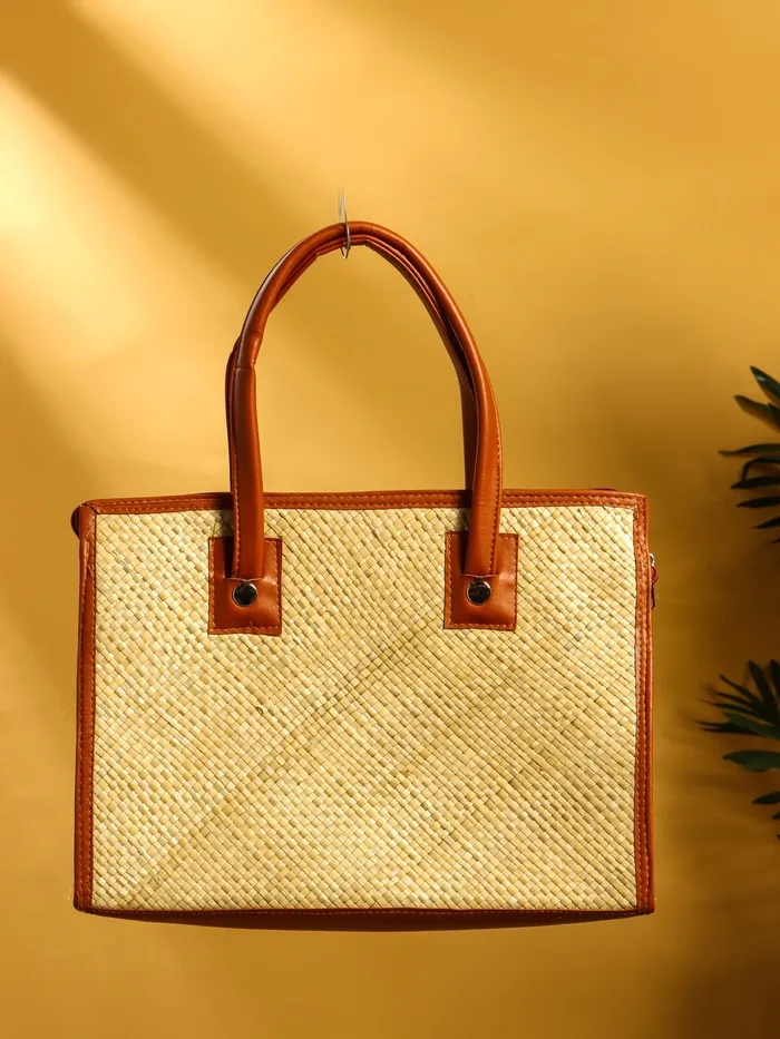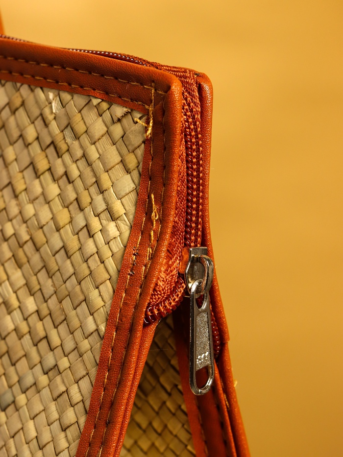 Сумка плетёная на молнии из пандана, 35×12×40 см, светло-коричневая — Характеристики
