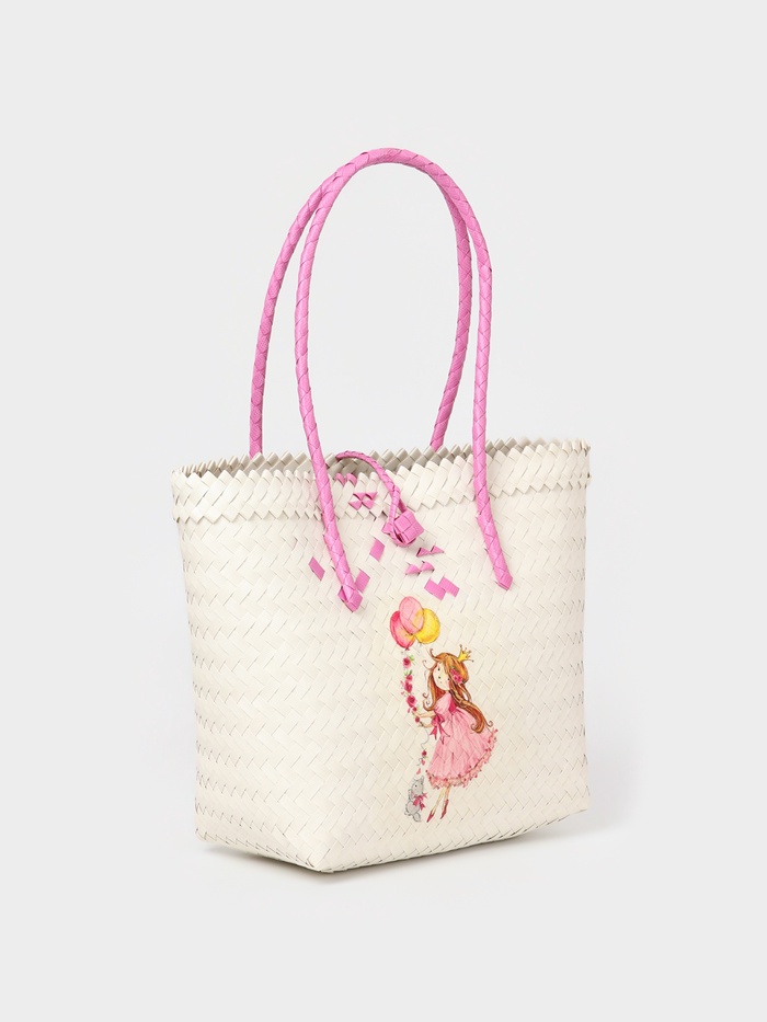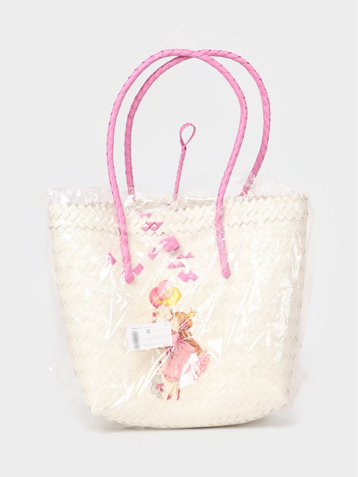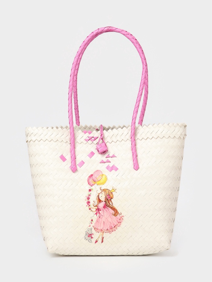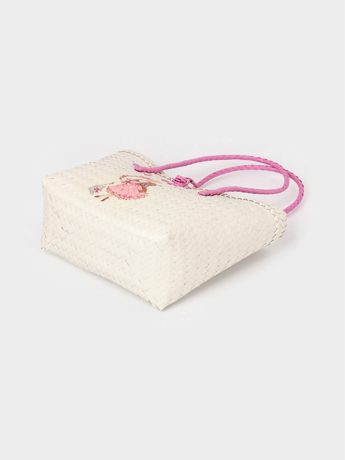 Плетёная сумка с принтом «Девочка с букетом» в романтичном стиле. Нежная бело-розовая гамма и трогательный рисунок создают настроение лёгкости и беззаботности. Эта сумка станет выразительным акцентом в вашем образе, напоминая о весенней прогулке в цветущем саду.