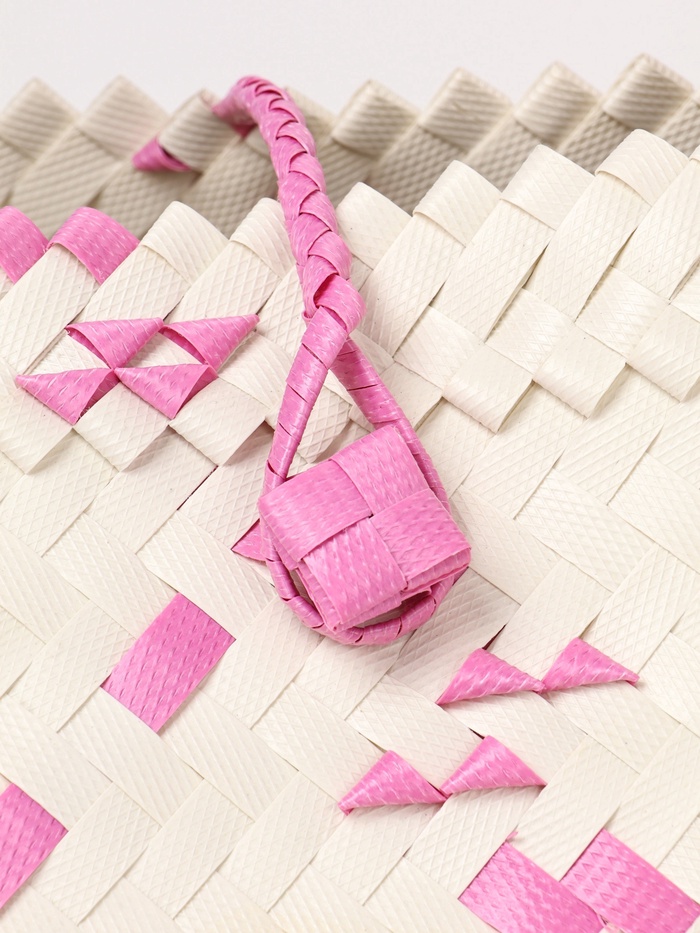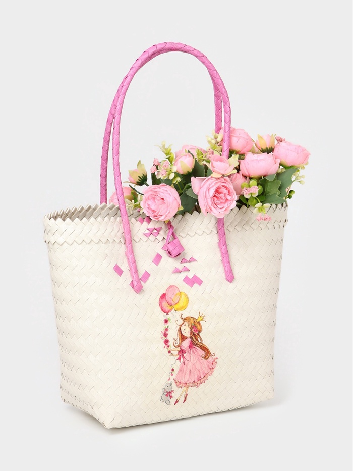 Сумка плетёная на застёжке «Девочка с букетом», 40×10×55 см, пластик, бело-розовая — Характеристики