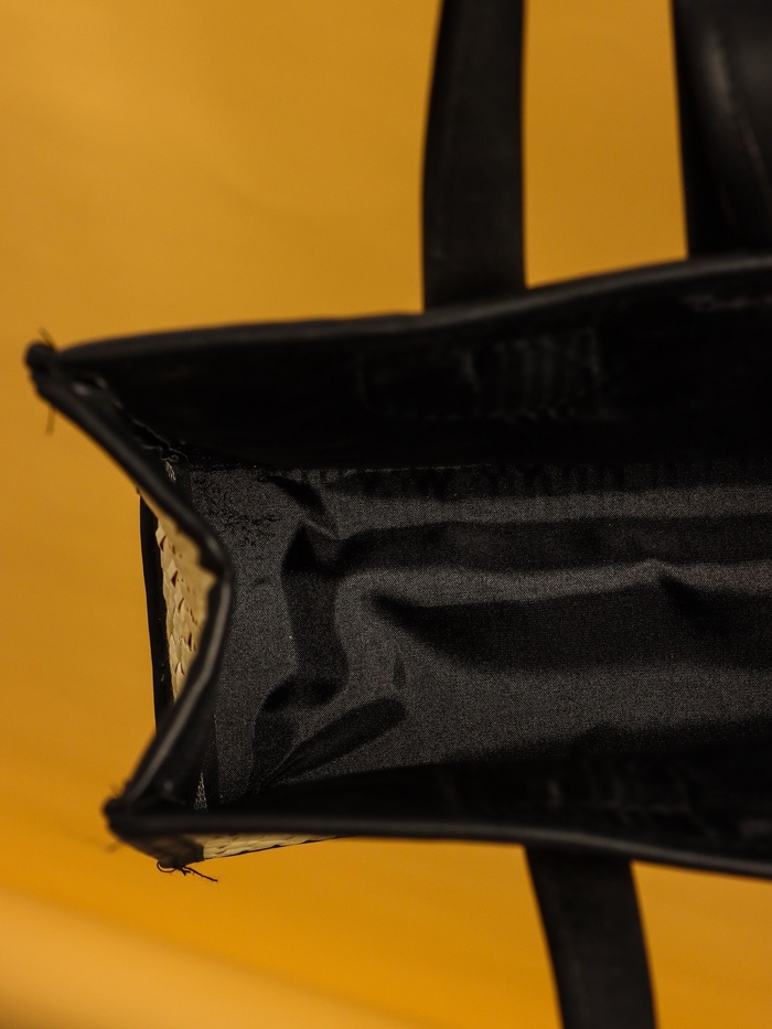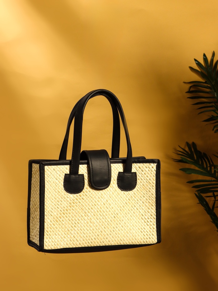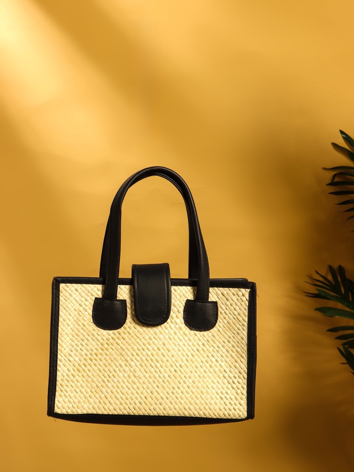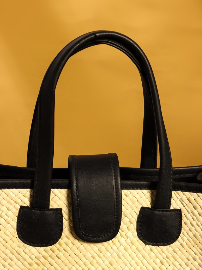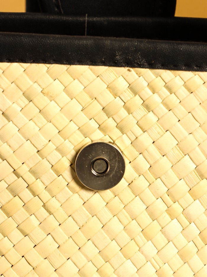 Сумка плетёная на застёжке из пандана, 30×10×35 см, бежево-чёрная — Характеристики