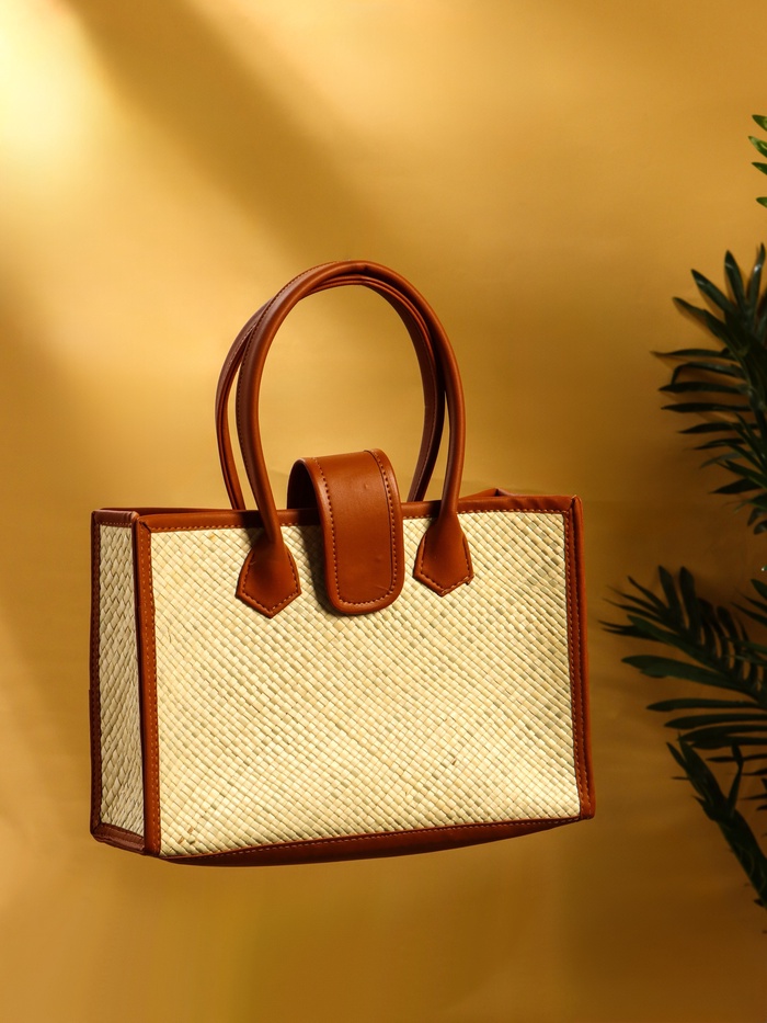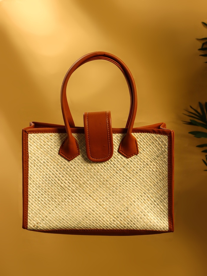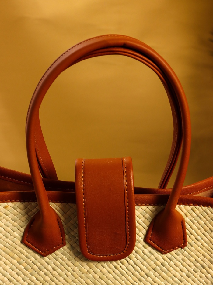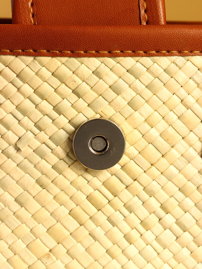 Сумка плетёная на застёжке из пандана, 30×10×35 см, бежево-коричневая — Характеристики