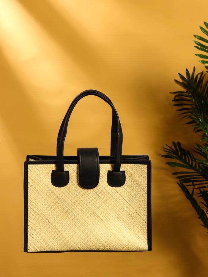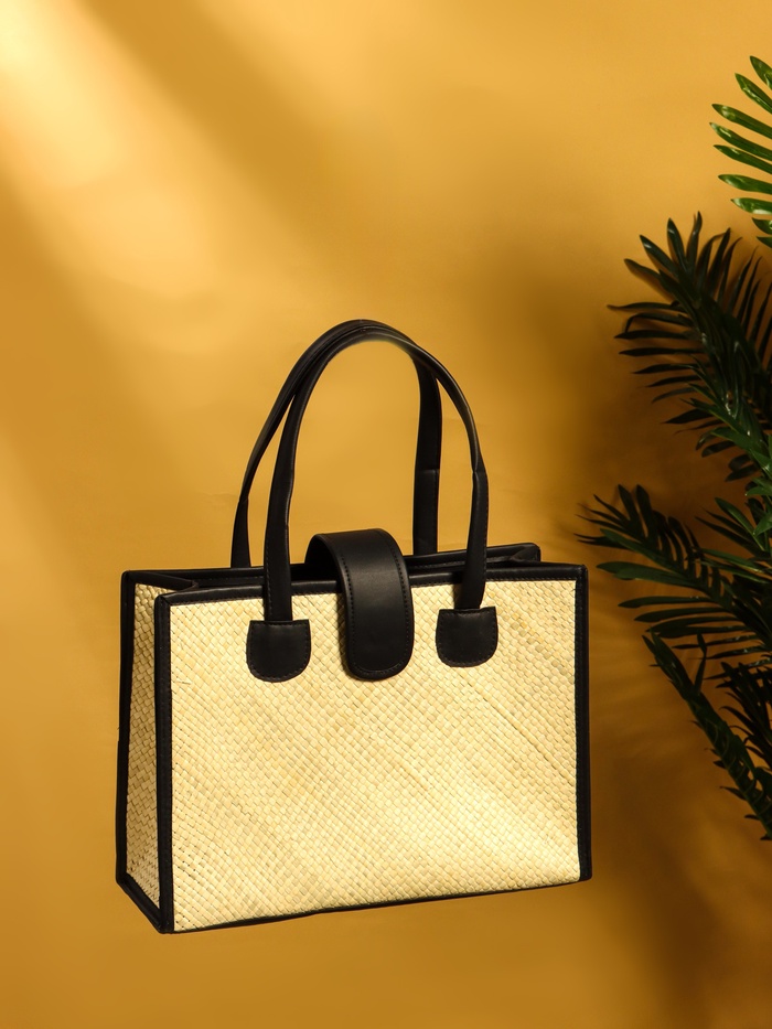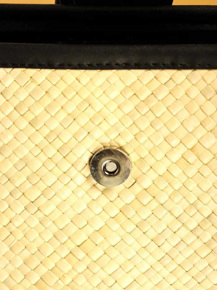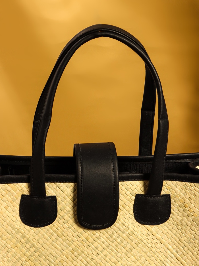 Сумка плетёная на застёжке из пандана, 35×12×40 см, бежево-чёрная — Характеристики