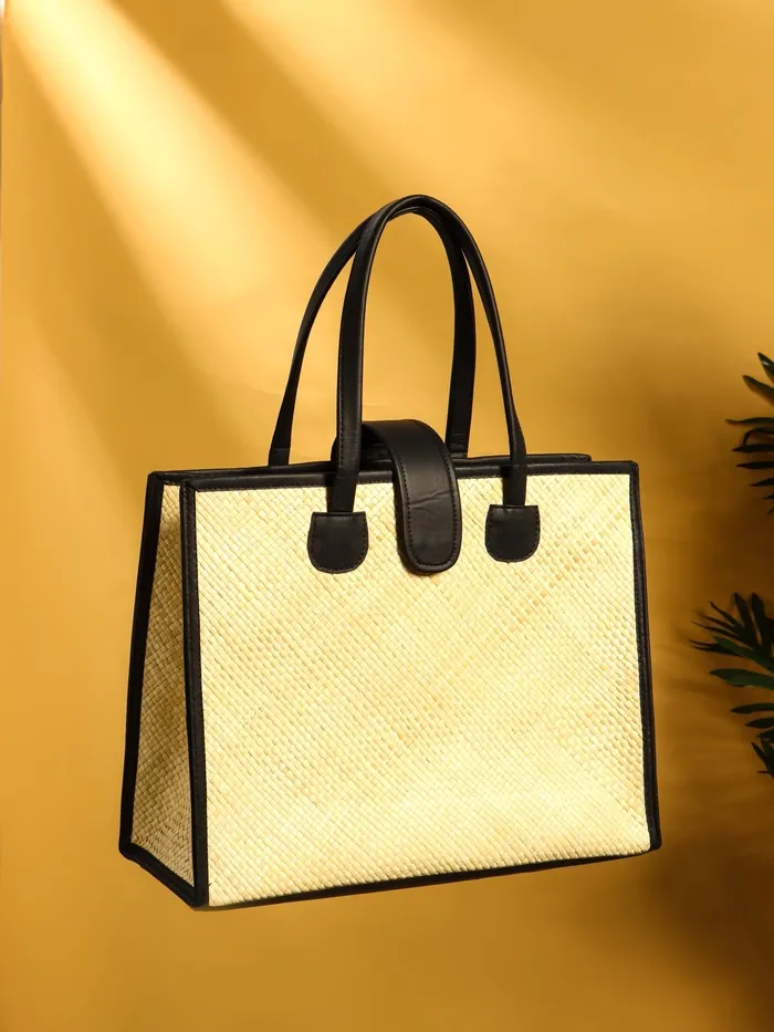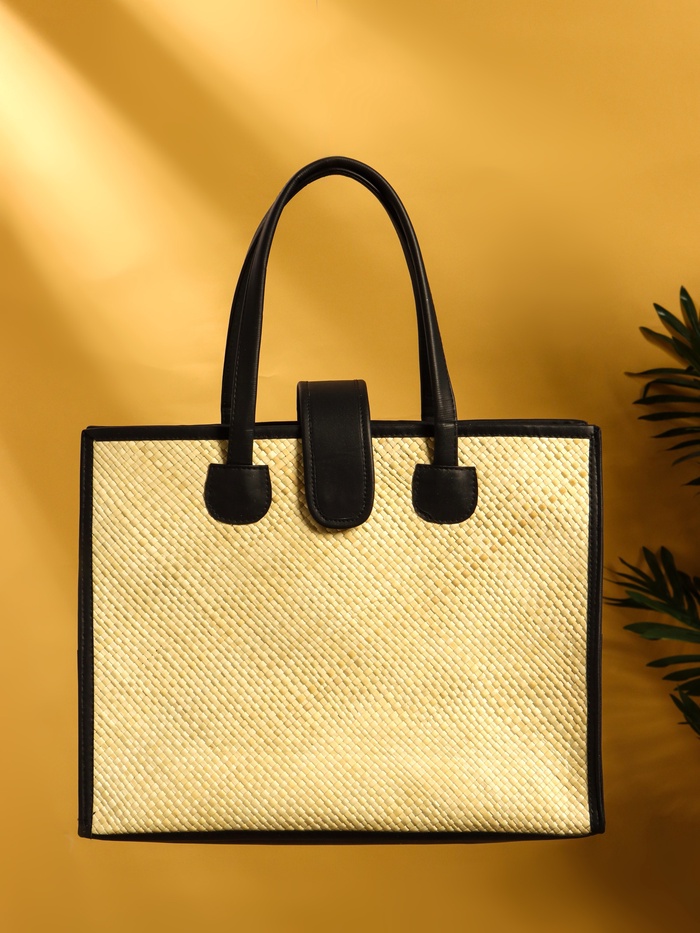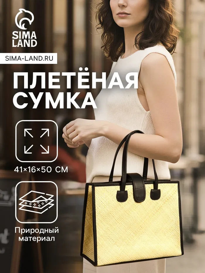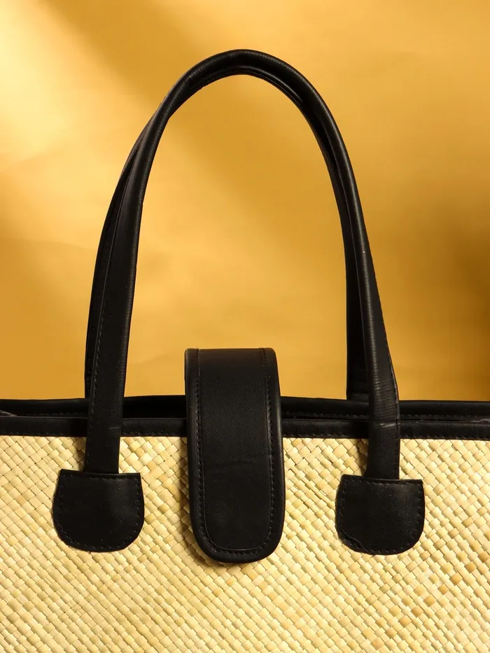 Сумка плетёная на застёжке из пандана, 41×16×50 см, бежево-чёрная — Характеристики